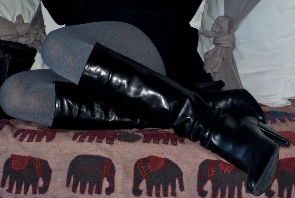 Ich liebe es auch, kurze Röcke, gemusterte Strumpfhosen, Leggings und Slim-Jeans zu tragen. Doch gerade bei der Kombi Rock-Stiefel (besonders "Overknees") muß ich auf Grund meiner Beinlänge (und meiner fast 40 Lenzen :) ) sehr aufpassen, damit das Ensemble einigermaßen "gesittet" aussieht. Bei den letzten beiden Fotos kannst du deutlich sehen, wie hoch eigentlich fast knielange Reitstiefelschäfte BEI MIR reichen!! :)