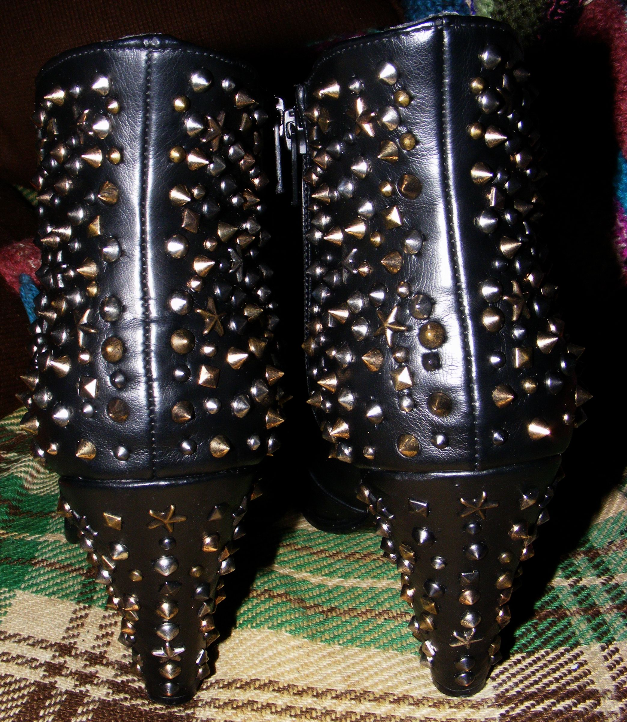 Im Gegensatz dazu werden die flachen Nietenketten der Modelle aus der Saison 2009 (meine obligatorische Schlafzimmerdeko, ich bin ja manchmal auch allein zu Hause :) ) als äußerst angenehmer Reiz empfunden. Besonders, wenn man sich gegenüber sitzt, die Füße in den Schoß stemmt und dann von beiden Seiten gleichzeitig mit den weichen Spitzen ... :P