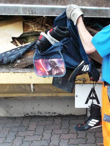 Der "Darth-Vader-Rucksack" und die Sneakers waren also wortwörtlich der "letzte Dreck", der mitgenommen wurde.