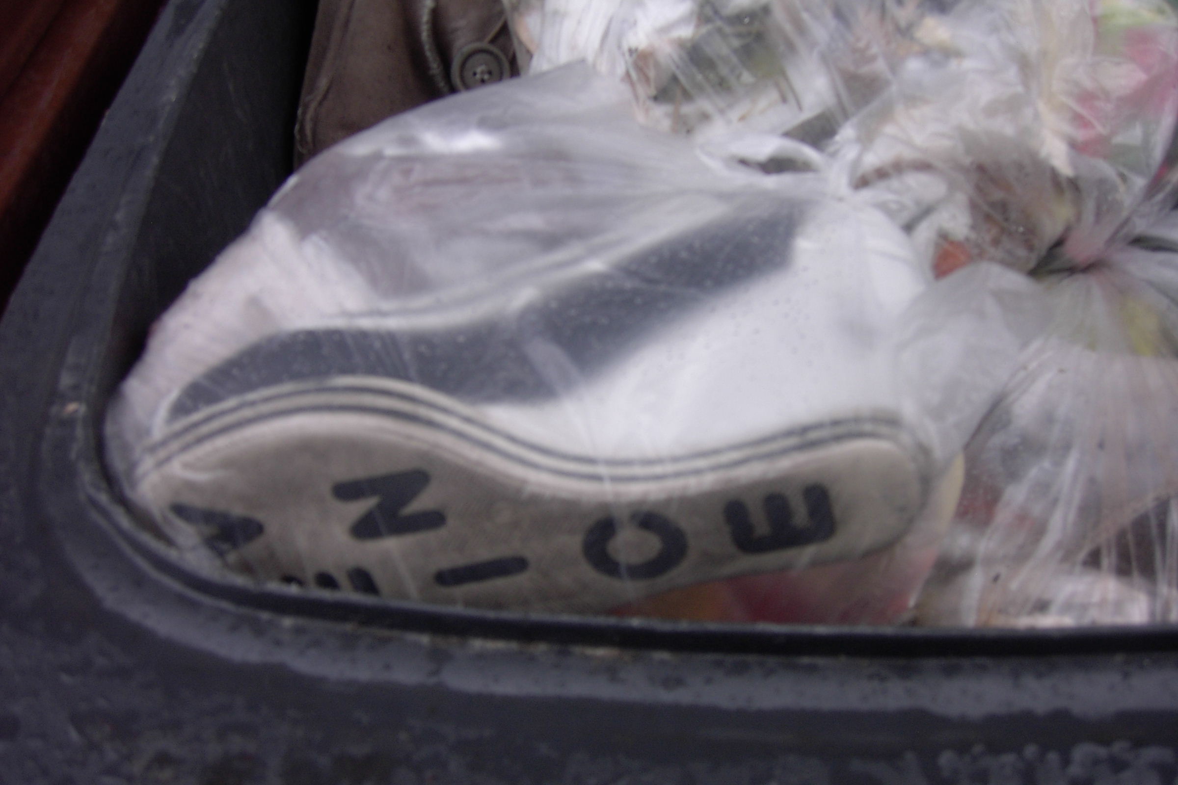 Lauras - ehemals - weiße Chucks kamen dazu im Küchenmüllbeutel.