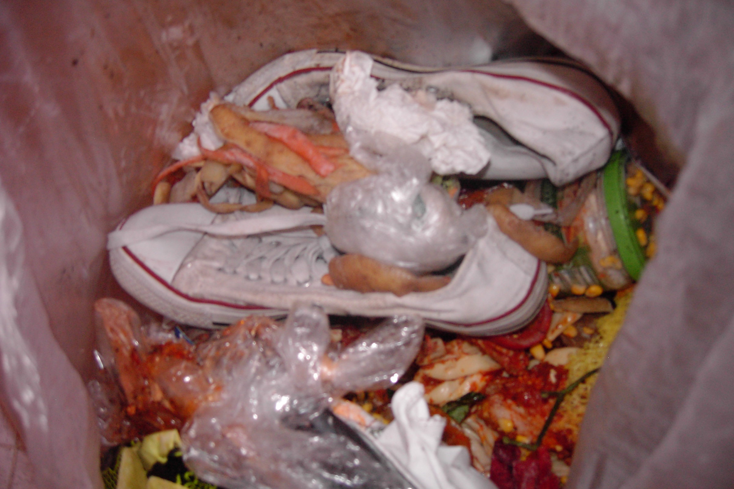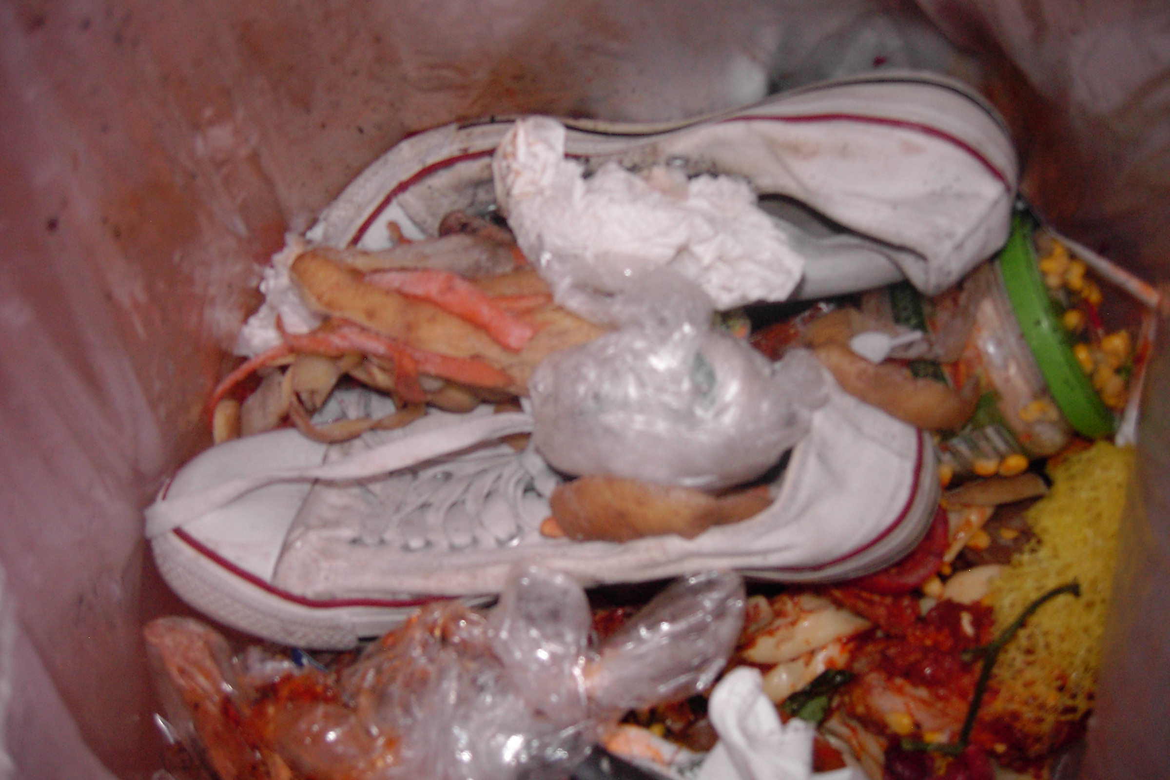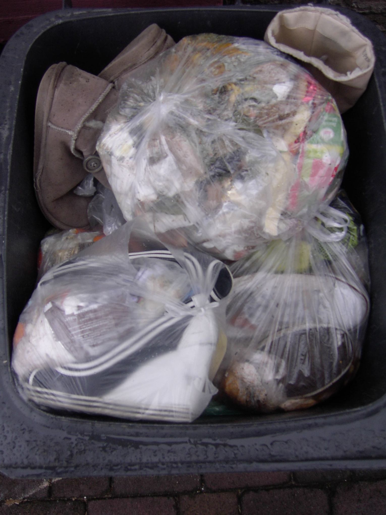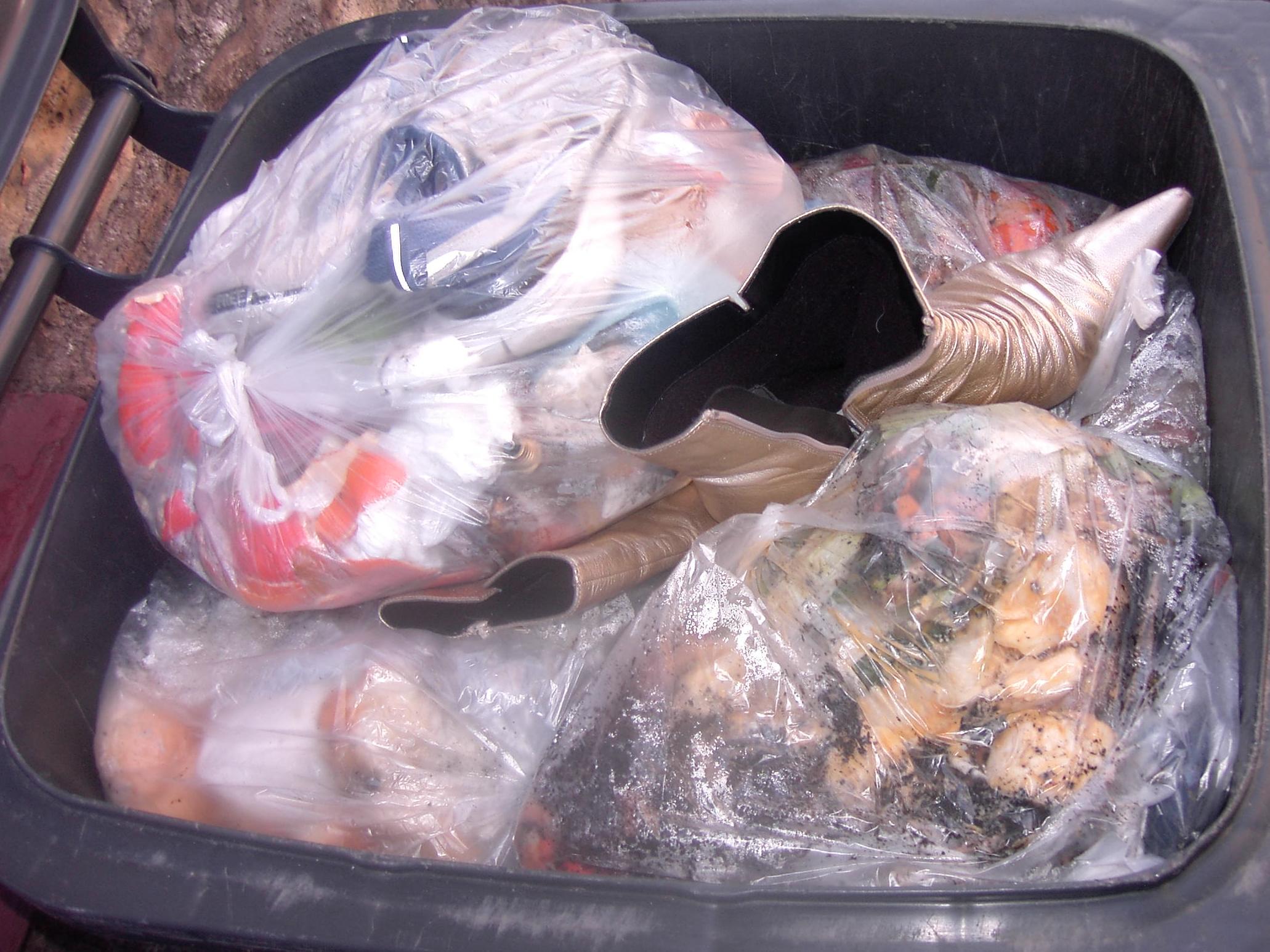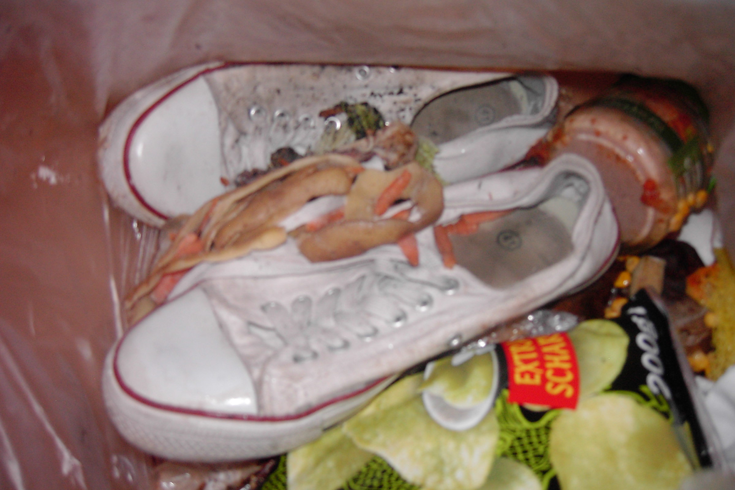 unsere Mülltonne arbeitet daran, dass die Stiefel noch vor der Müllabfuhr schon total im Dreck verschwinden: