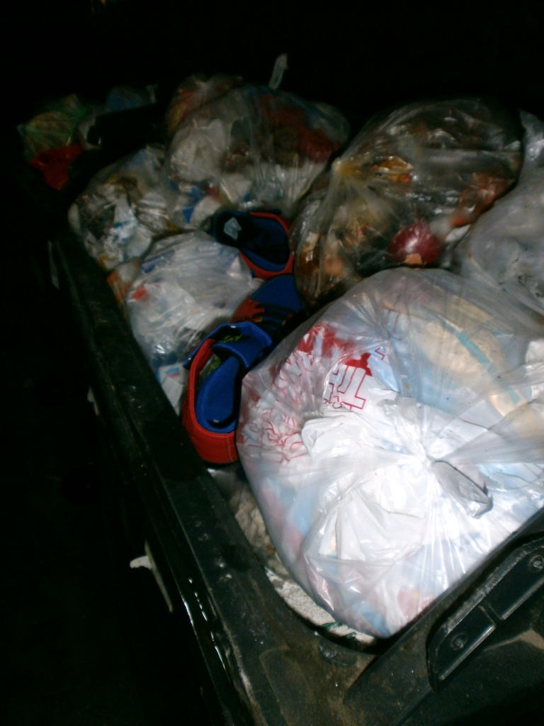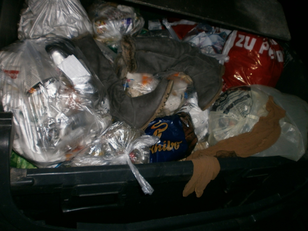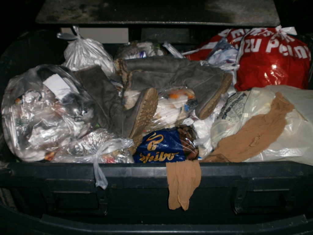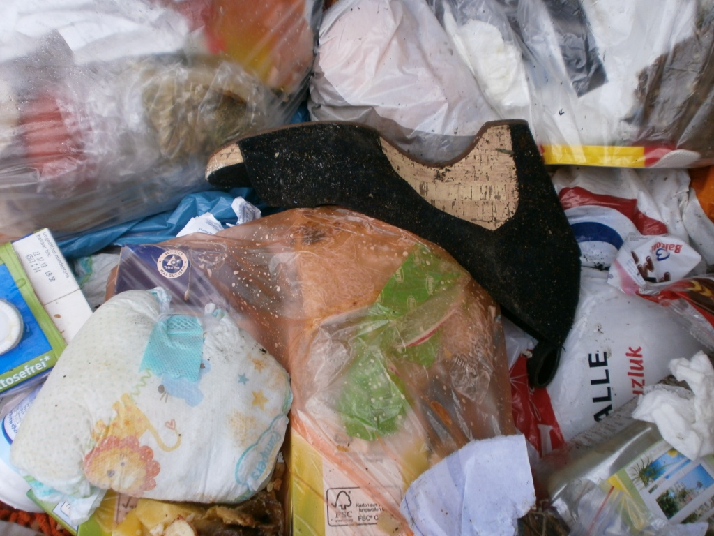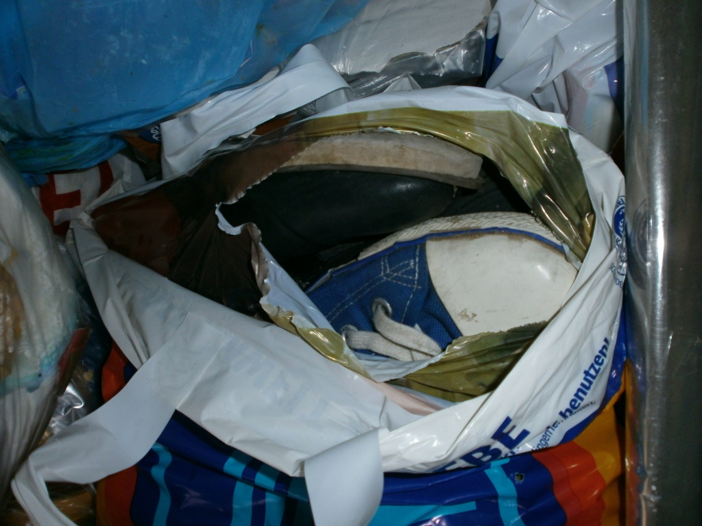 Das war in die Mülltüte gestopft worden: Alles stinkende fertige Latschen.