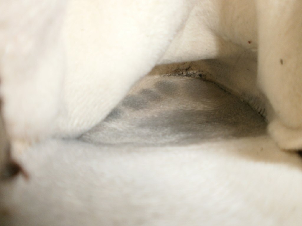 Ein süßer kuschelweicher Winterstiefel - total kaputt.