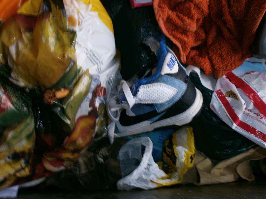 Lumpen und Schuhe im Müll sind schon eine geile Sache. Noch geiler ist es, wenn sie schon zerwühlt und achtlos herumgeschmissen im Dreck liegen; - verachtet und chancenlos auf Rettung.