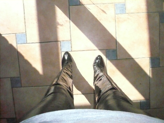 Ja, dann denk mal darüber nach, wie meine perfekt geraden Füße das weiche Leder der Stiefel formen, nicht zu vergessen die sexy Spitzenfalte in der Hocke (u.a. vorm Ofen ...) :)