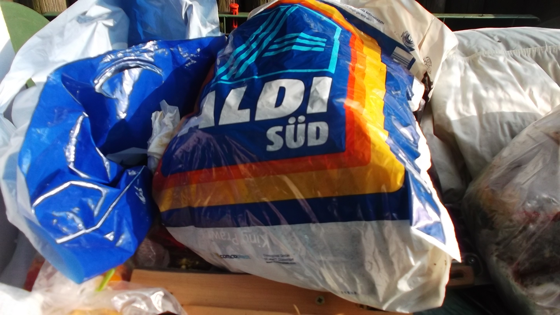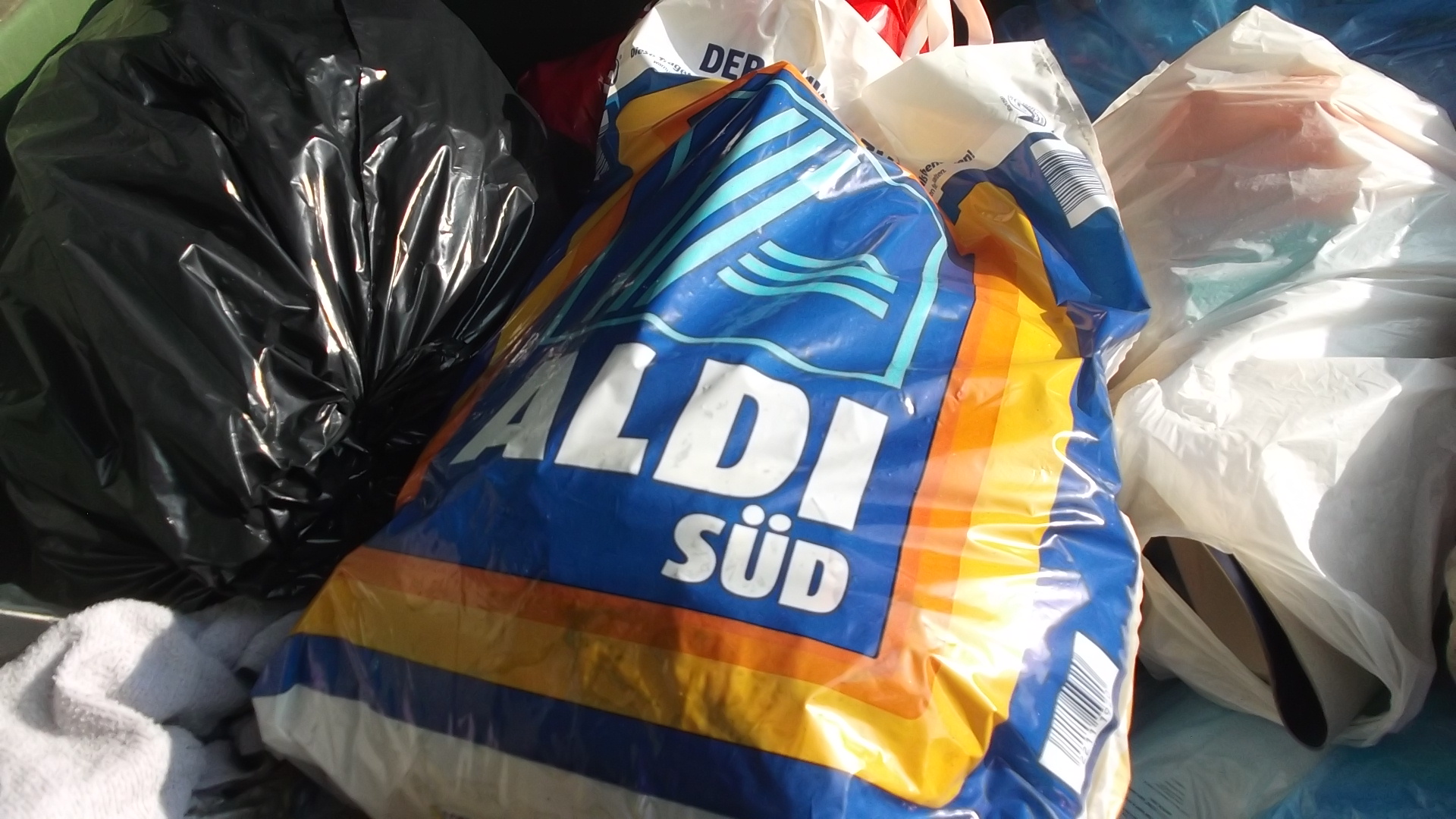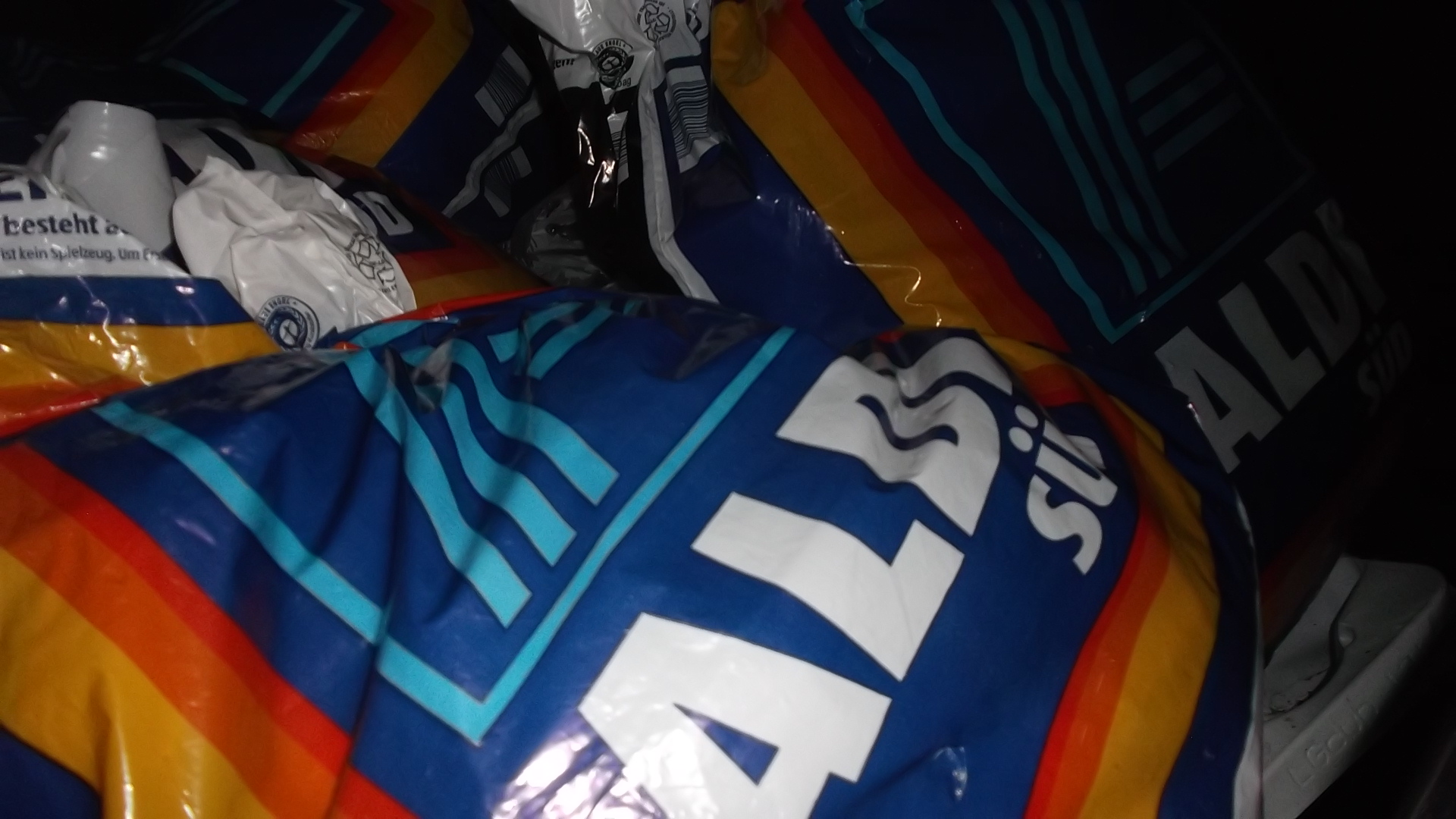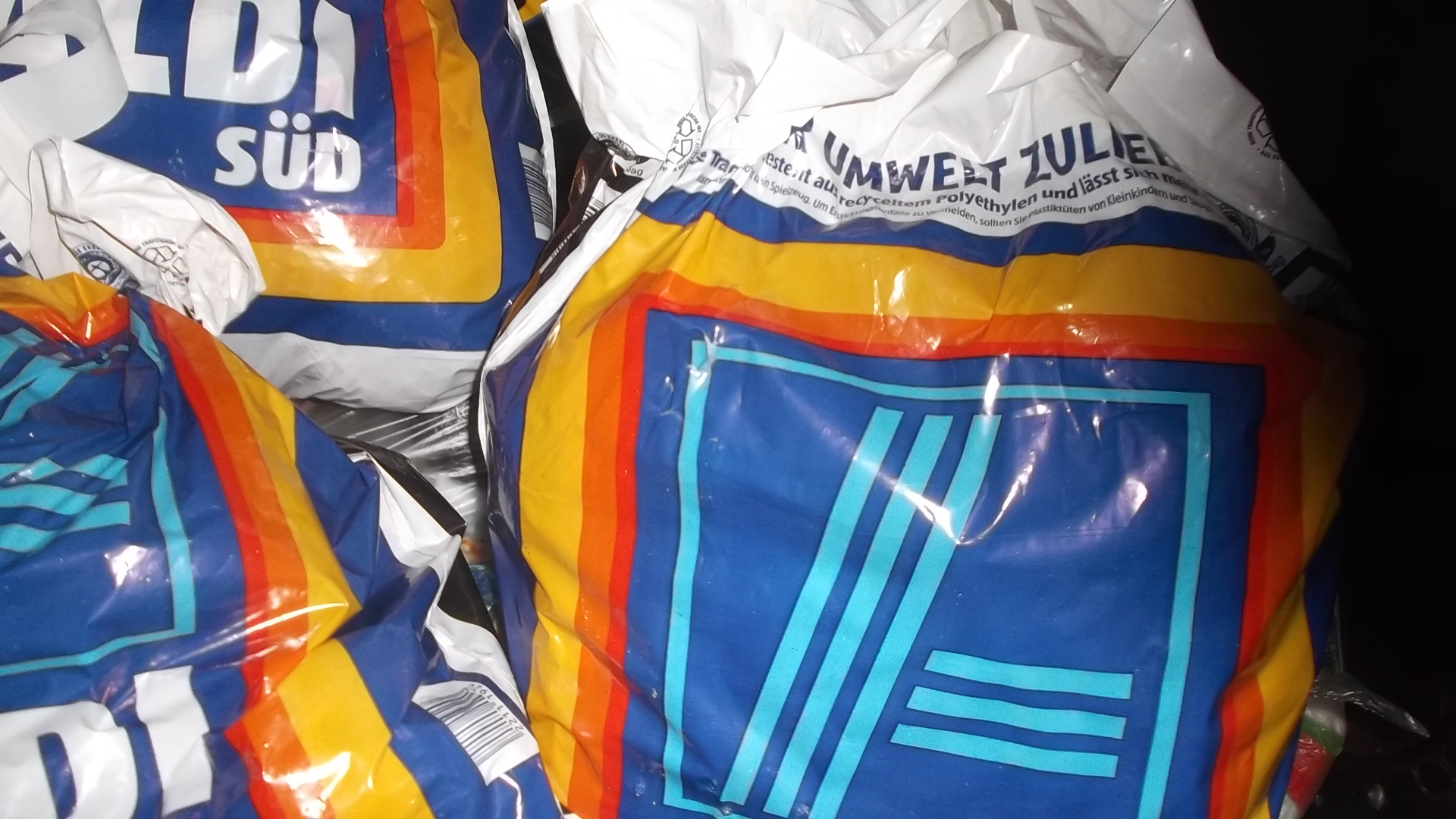 Aldi-Plastiktüten auf dem Weg in die Müllverbrennung....da die Bilder schon 3 Wochen alt sind, sind diese Tüten mittlerweile längst vernichtet