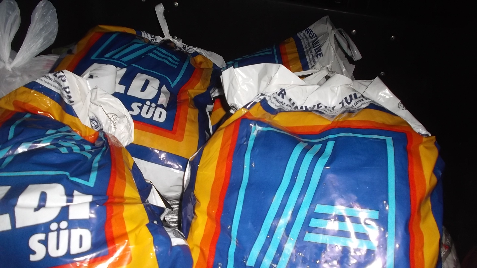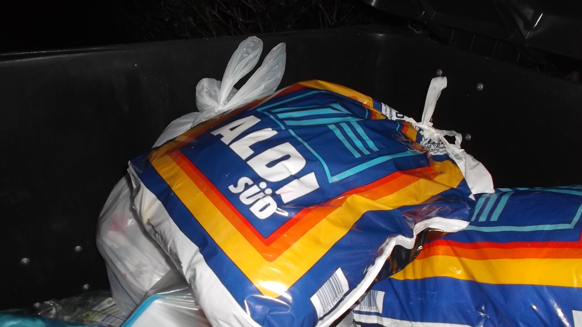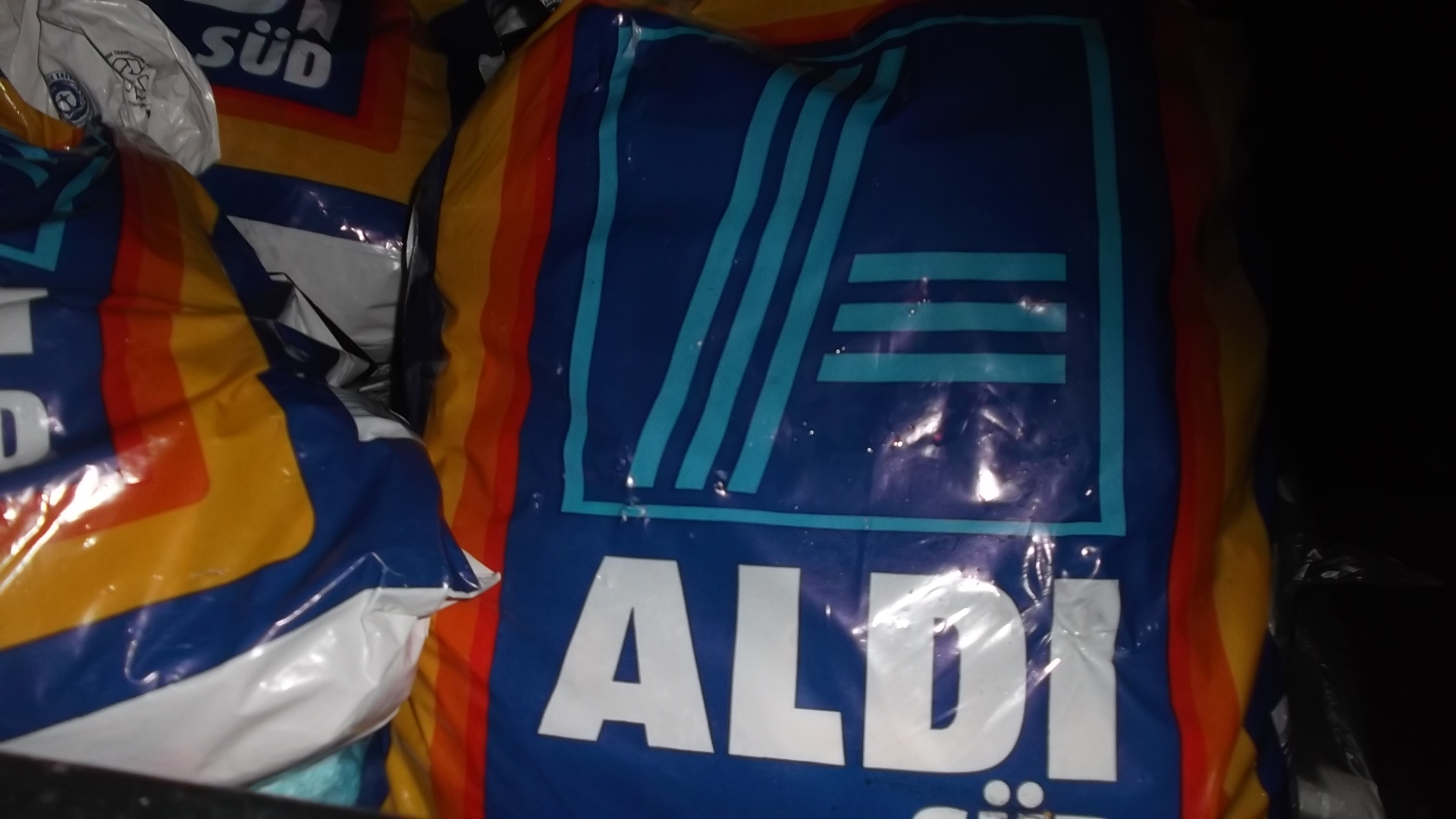 Aldi-Plastiktüten auf dem Weg in die Müllverbrennung....da die Bilder schon 3 Wochen alt sind, sind diese Tüten mittlerweile längst vernichtet