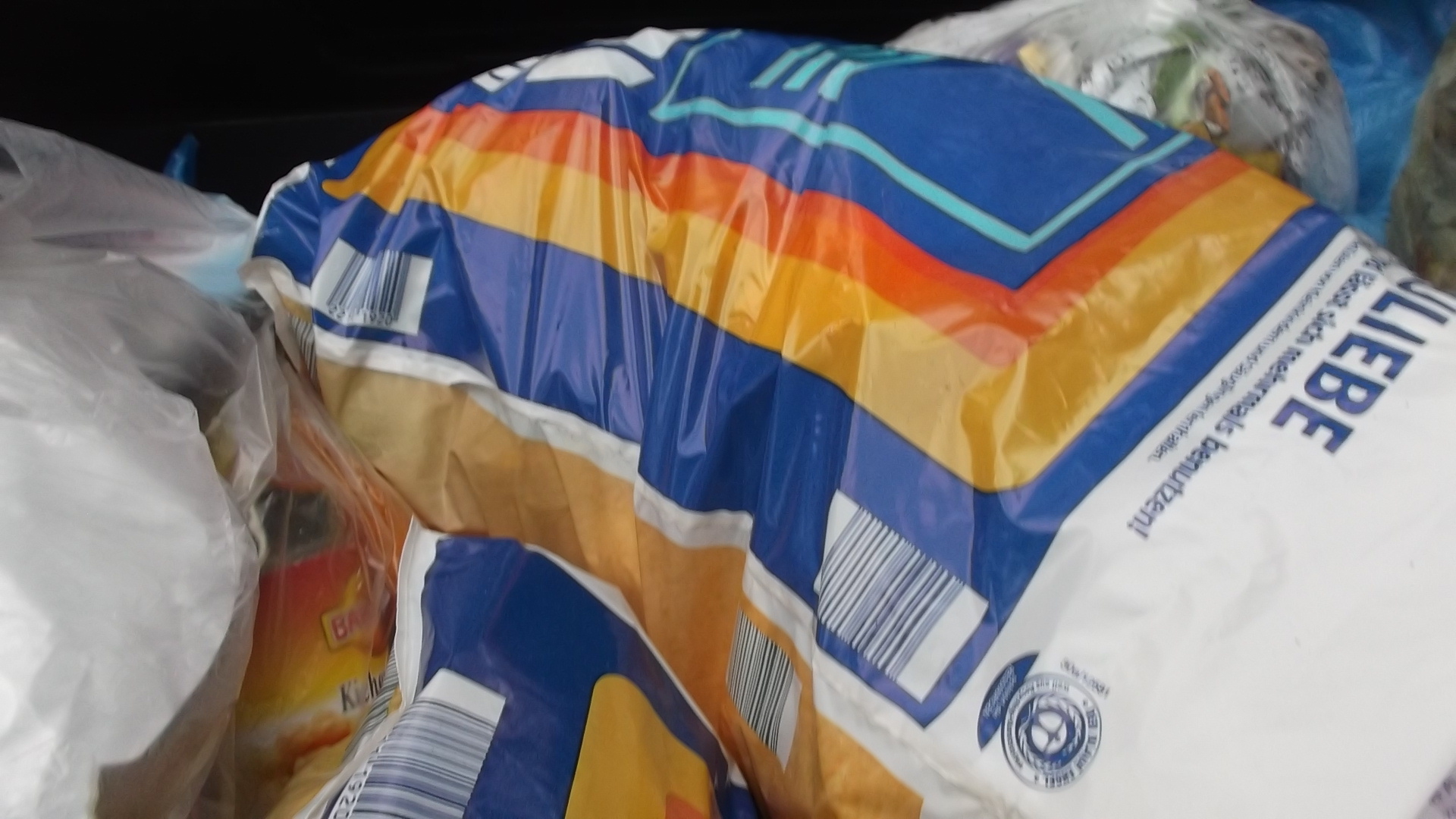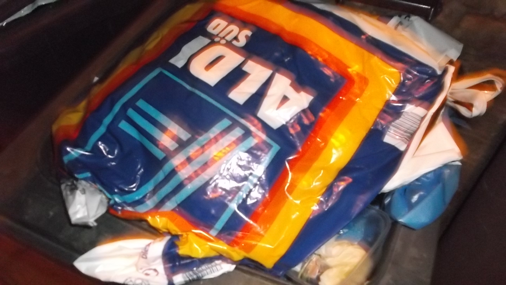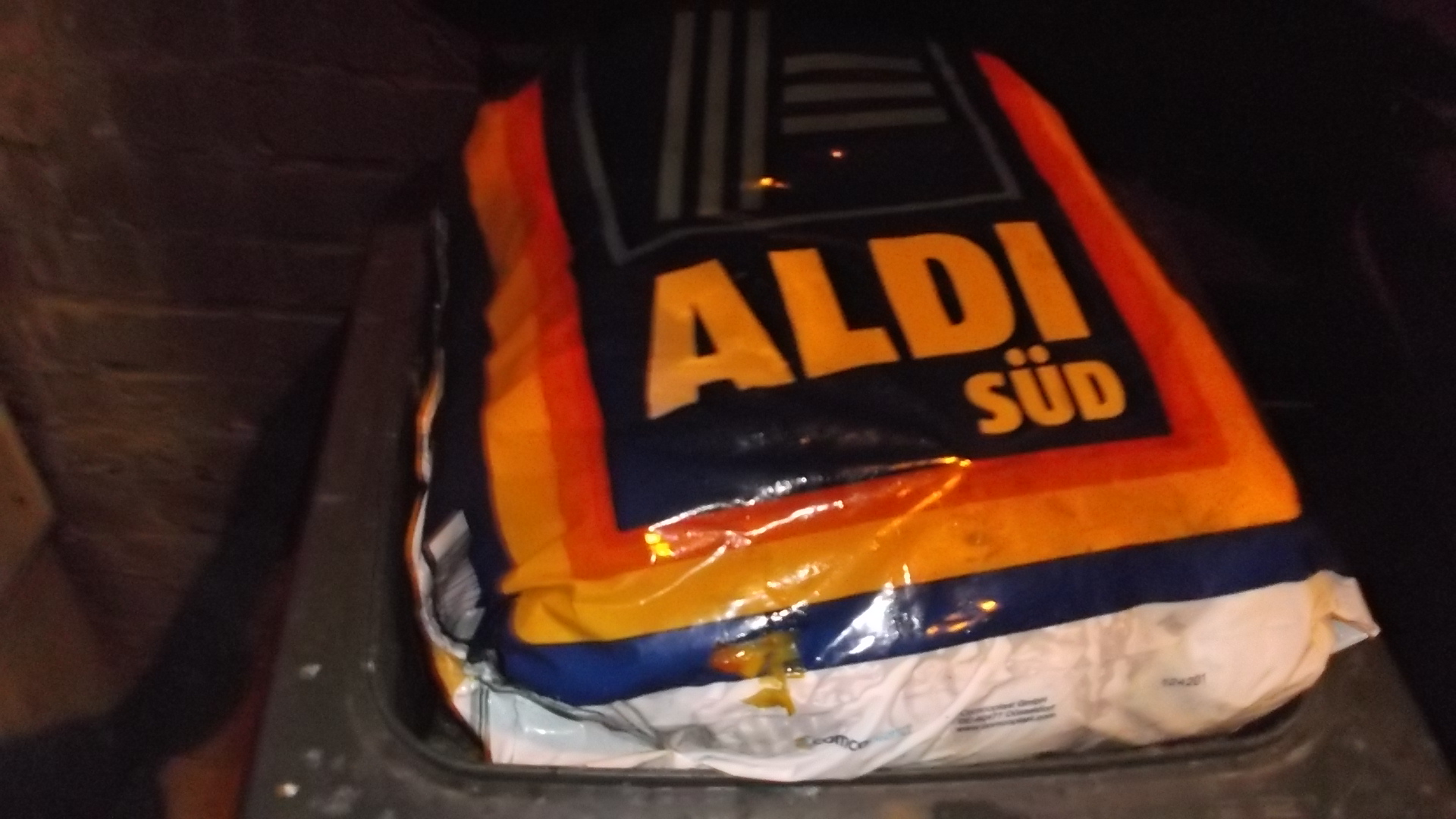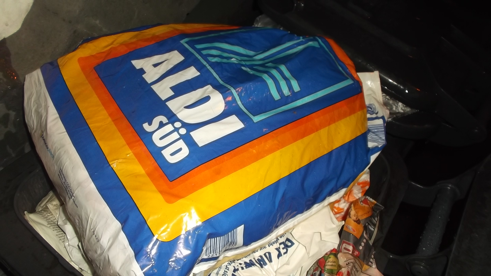 Aldi-Plastiktüten auf dem Weg in die Müllverbrennung....da die Bilder schon 3 Wochen alt sind, sind diese Tüten mittlerweile längst vernichtet