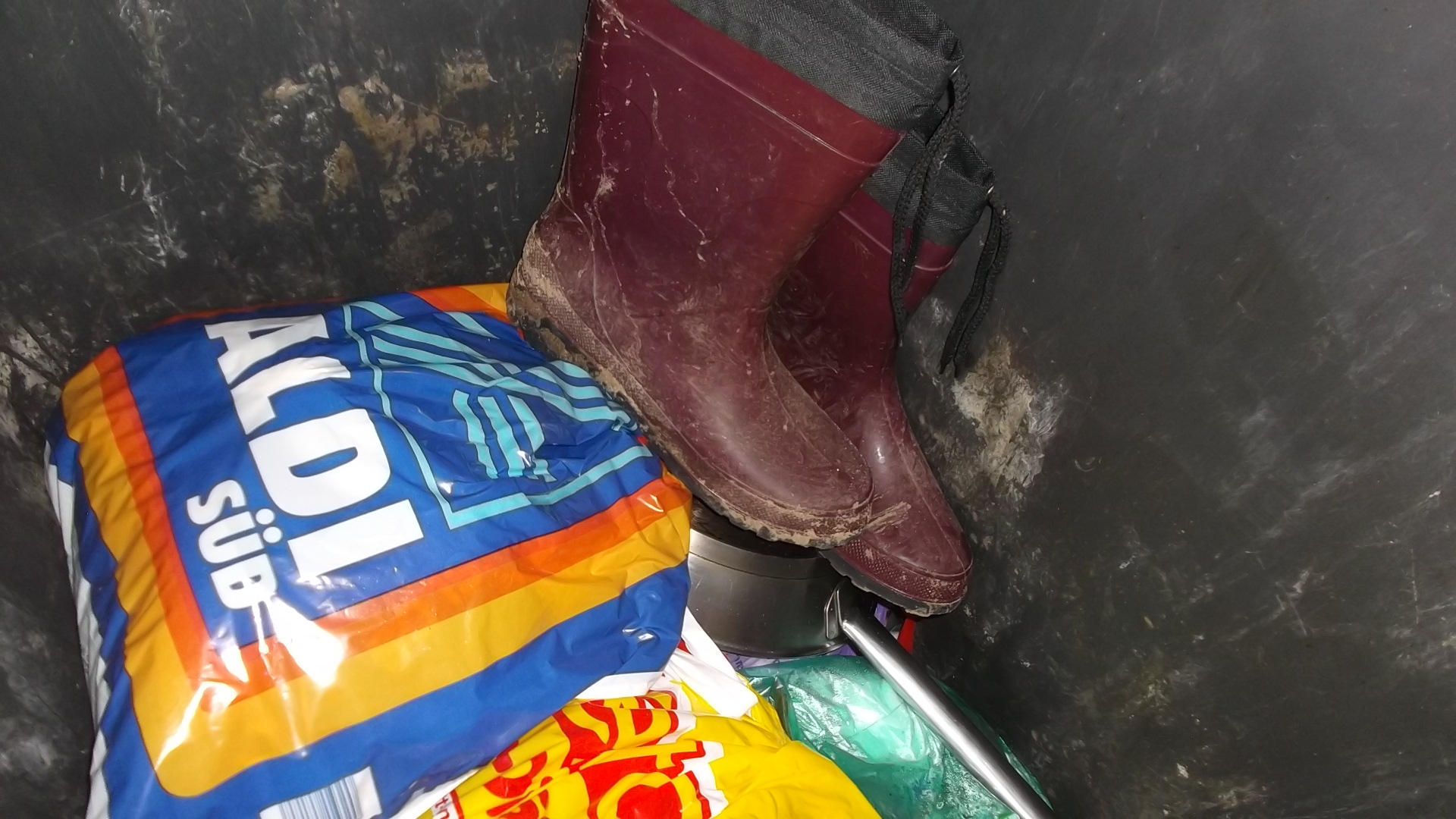Gummistiefel auf dem Wege in die Müllverbrennung