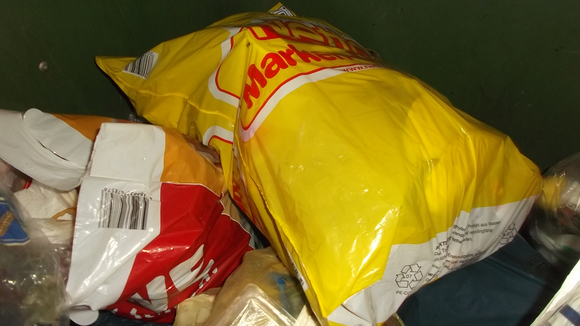 Heutiger Blick in die Müllcontainer...PLASTIKTÜTEN von nettoe und ALDI auf dem Weg in die MÜLLVERBRENNUNG......geil wenn die Plastiktüten endlich verbrannt werden...