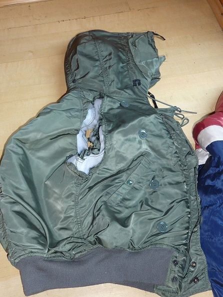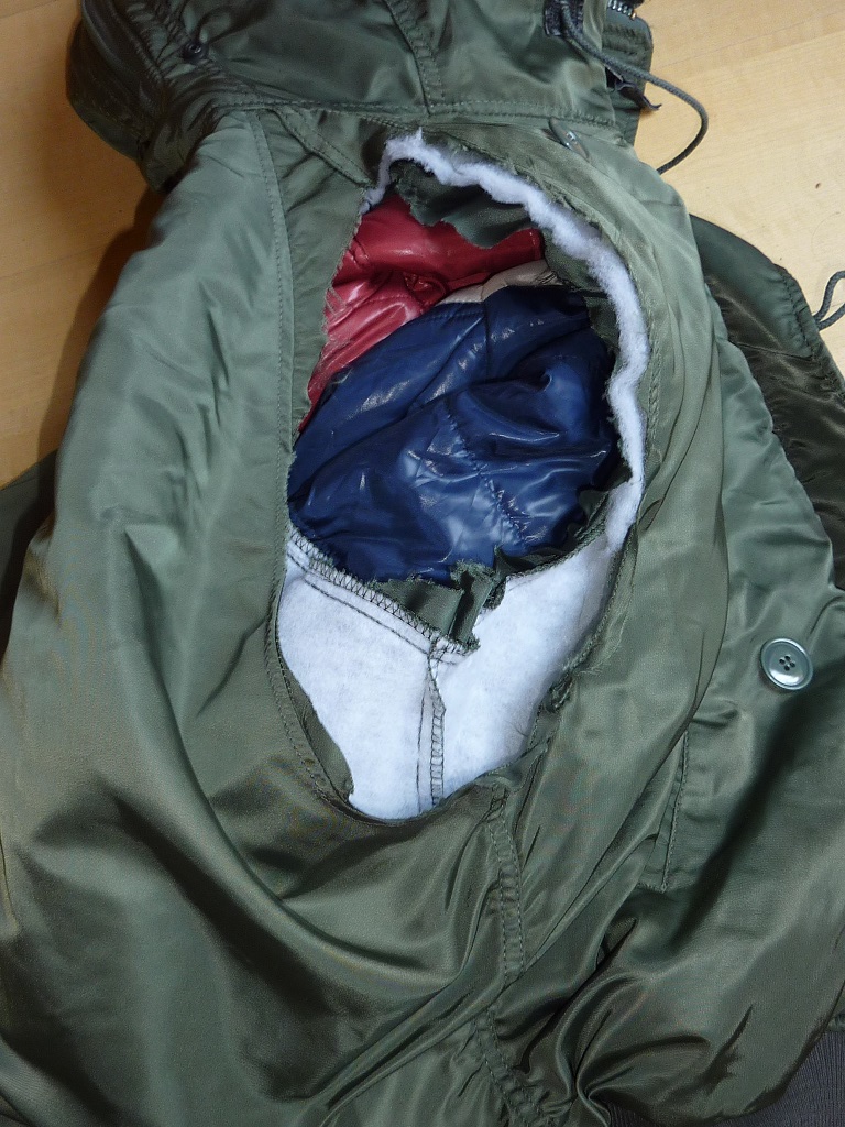 Noch kann man die Jacke anziehen weil sie nur innen drin zerrisen ist. von aussen siht man nix