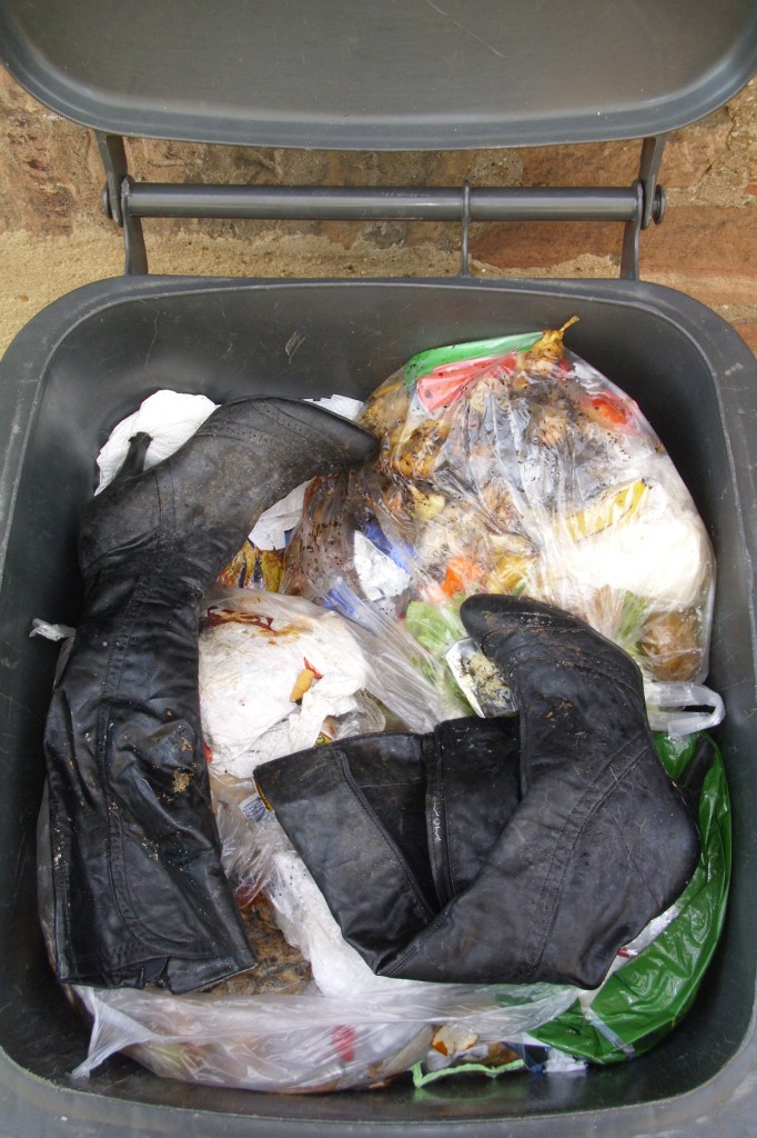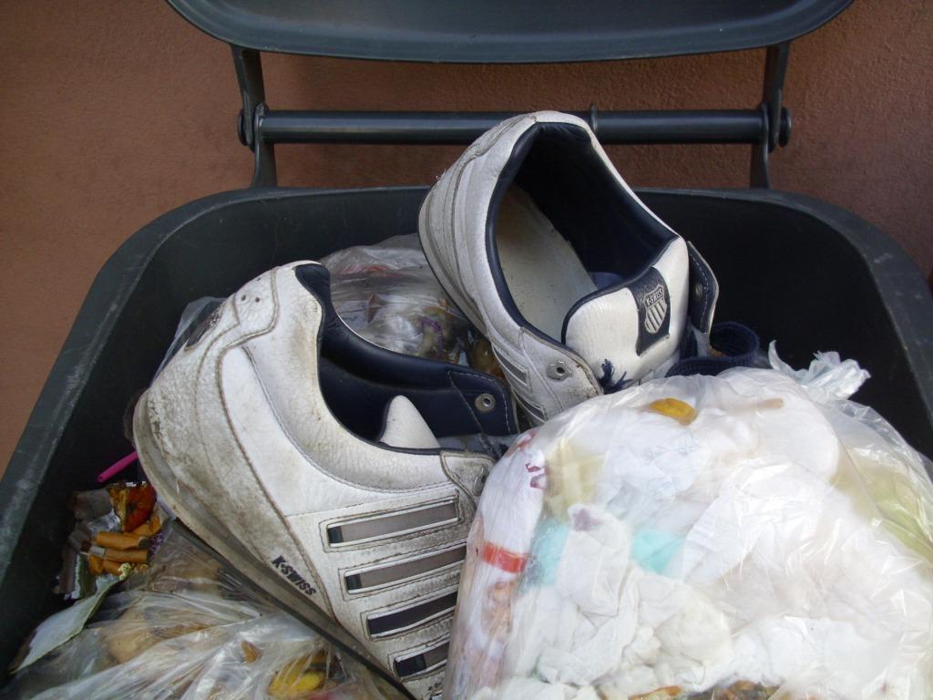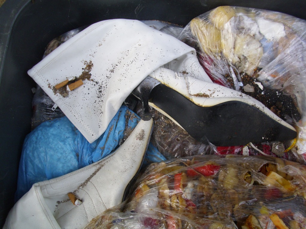 Manche Schuhe werden geil abgelatscht und manche Heels, welche auch nur abgestöckelte Absatzplättchen aufweisen, kommen „einfach“ in die Mülltonne. Ihr Spruch: „Öfter mal was Neues!“. Während ihre Wäsche und Nylons im Müllbeutel verschwinden, trägt sie ihre Schuhe oder Klamotten eher „lose“ zur Mülltonne. Das geschieht meist dann, wenn sie sich etwas Neues gekauft hat, oder sie nach einem langen Tag auf den Beinen ihre Klamotten auszieht und sofort ausrangiert und wegschmeißt. Für ein Paar nasse Schuhe kann das schon einmal bedeuten, den wohlverdienten Feierabend überraschend in der Mülltonne anzutreten.