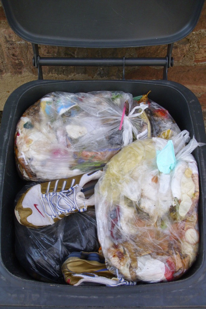 Aber das ist dann eh egal, weil in wenigen Tagen die Müllabfuhr den stinkenden Dreck abholt und vielleicht schon wieder ausrangierte Stiefel, oder große alte Turnschuhe noch bis zur Müllabfuhr weggeworfen werden sollen. Dann sind alle froh, noch ein bisschen Platz in der Mülltonne bis zum Abfuhrtermin zu haben. Wenn die Mülltonne dann an der Straße steht, lässt sich der Tonnendeckel oft doch nicht mehr schließen.