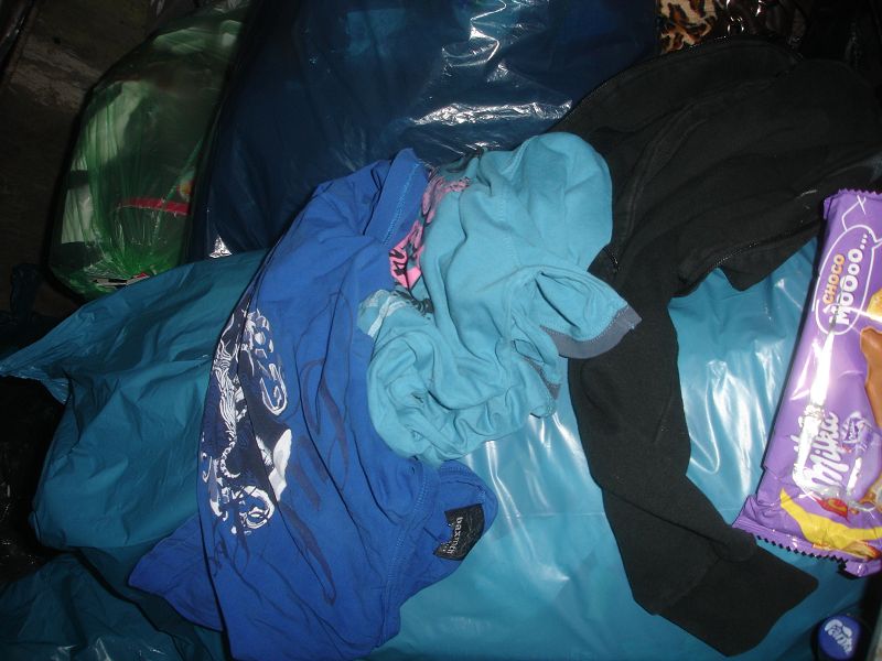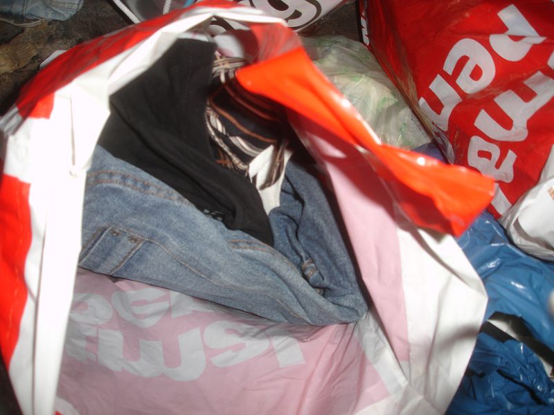 und in wieder einer anderen ein weiterer Sack mit Klamotten