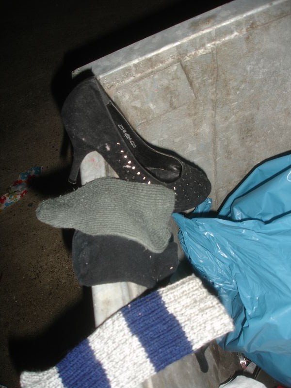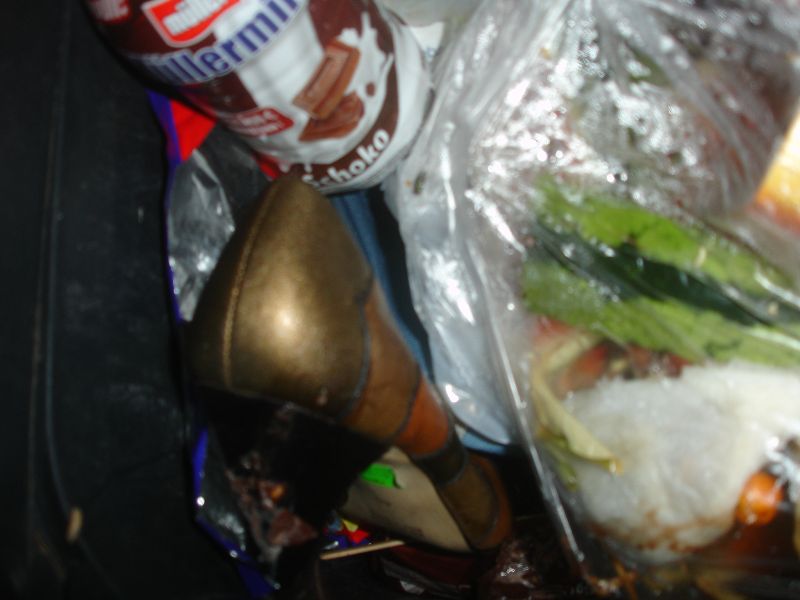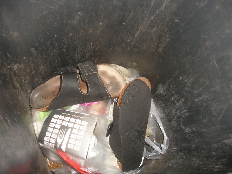 Soooo, ein andere Mülltonne: kaum einen Müllbeutel angehoben, schon schauen mich diese Pumps an: