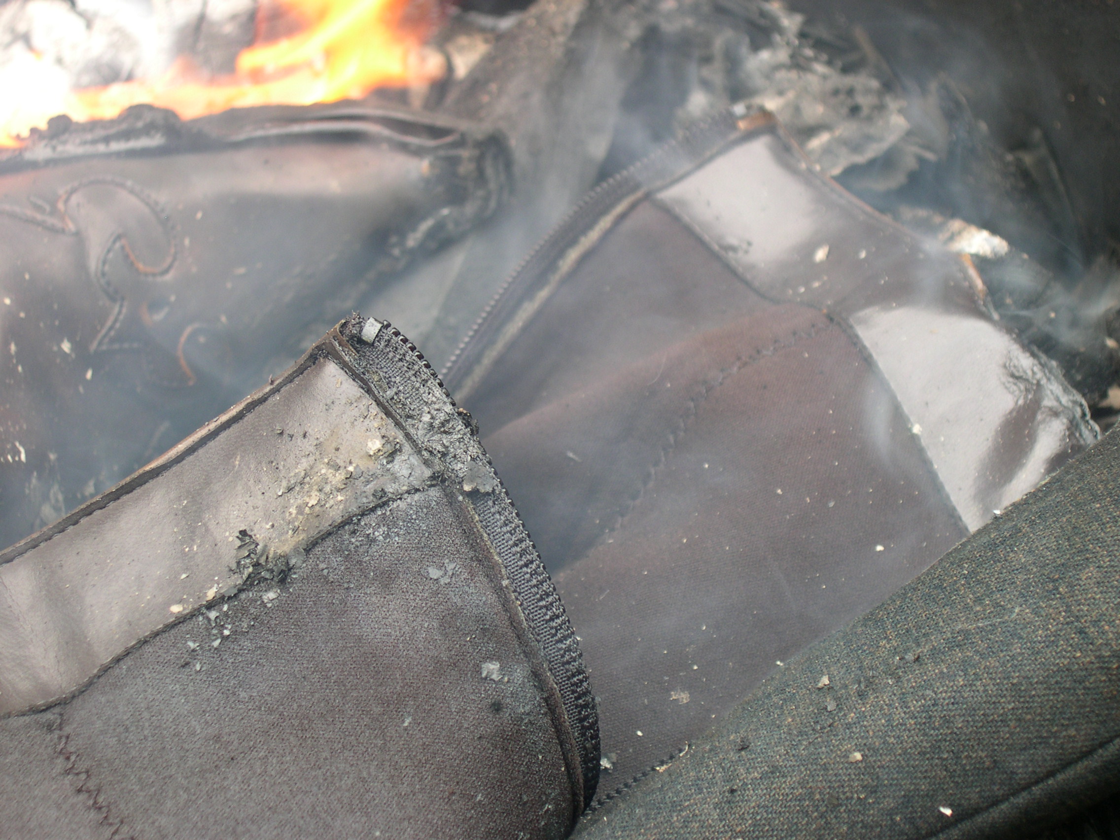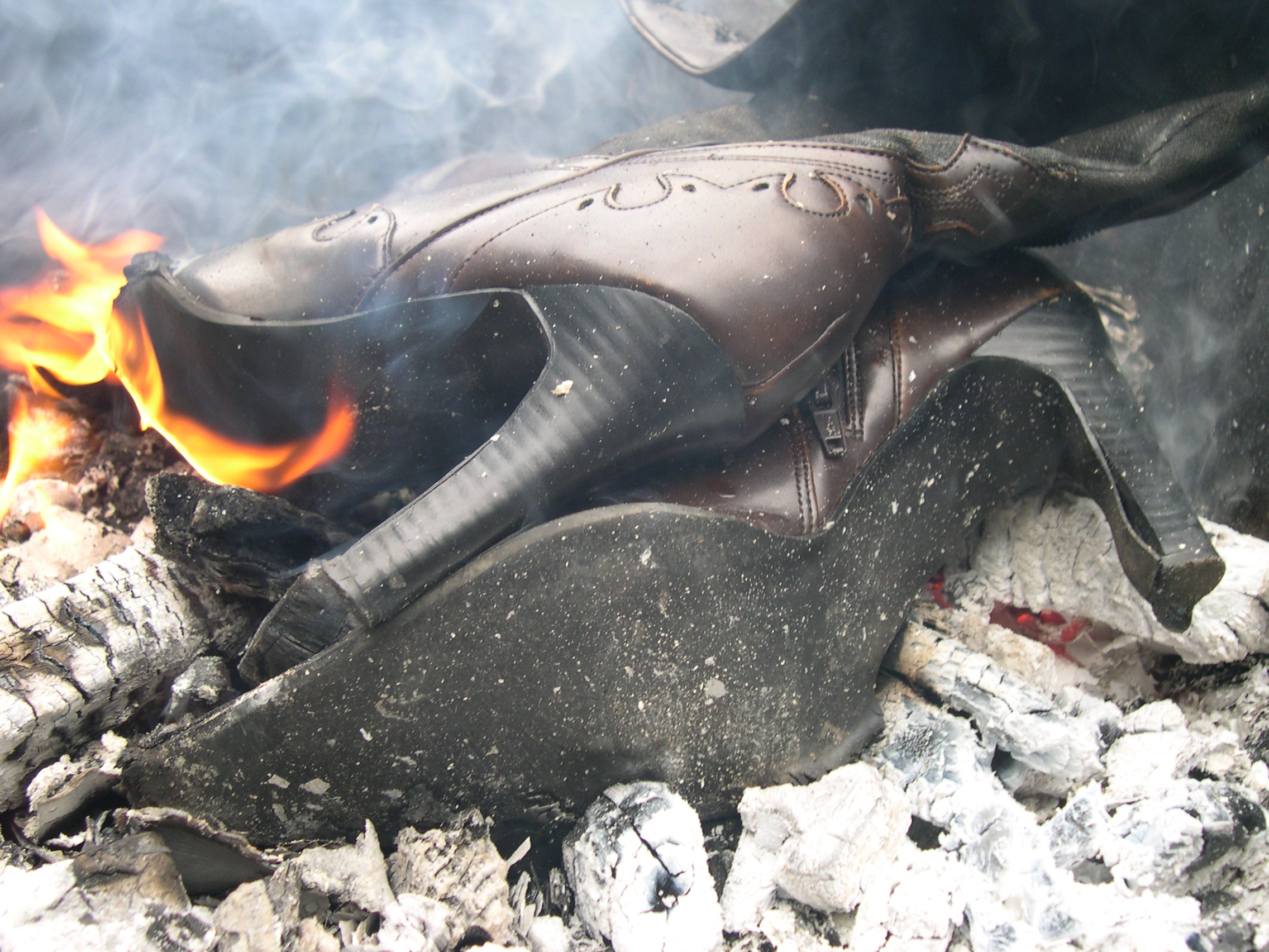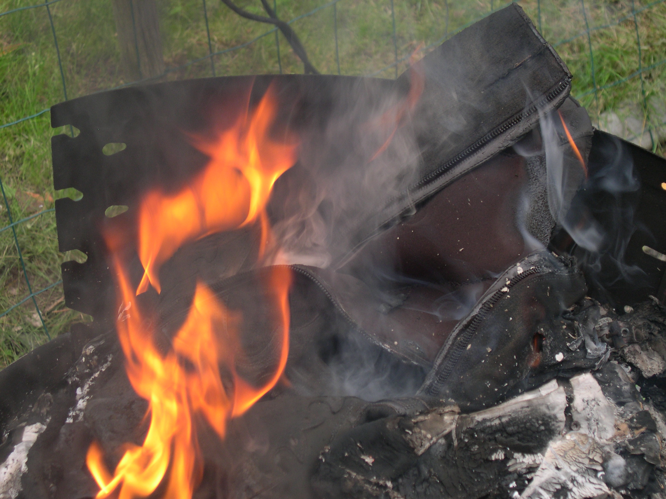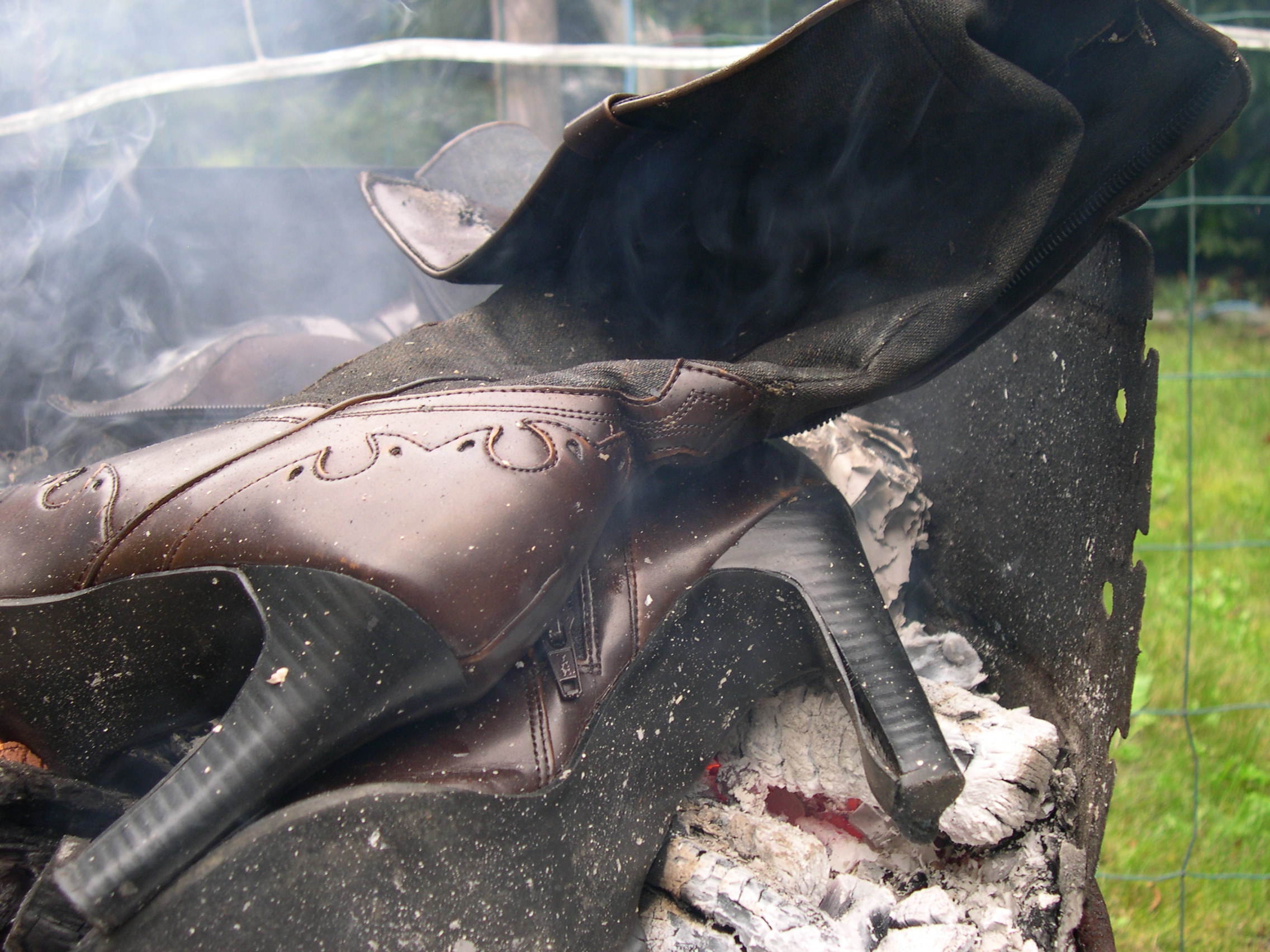 die Stiefel haben ja einiges mitgemacht bevor sie dem Feuer geopfert wurden. Da schlägt das Herz und der Prügel ganz schön.