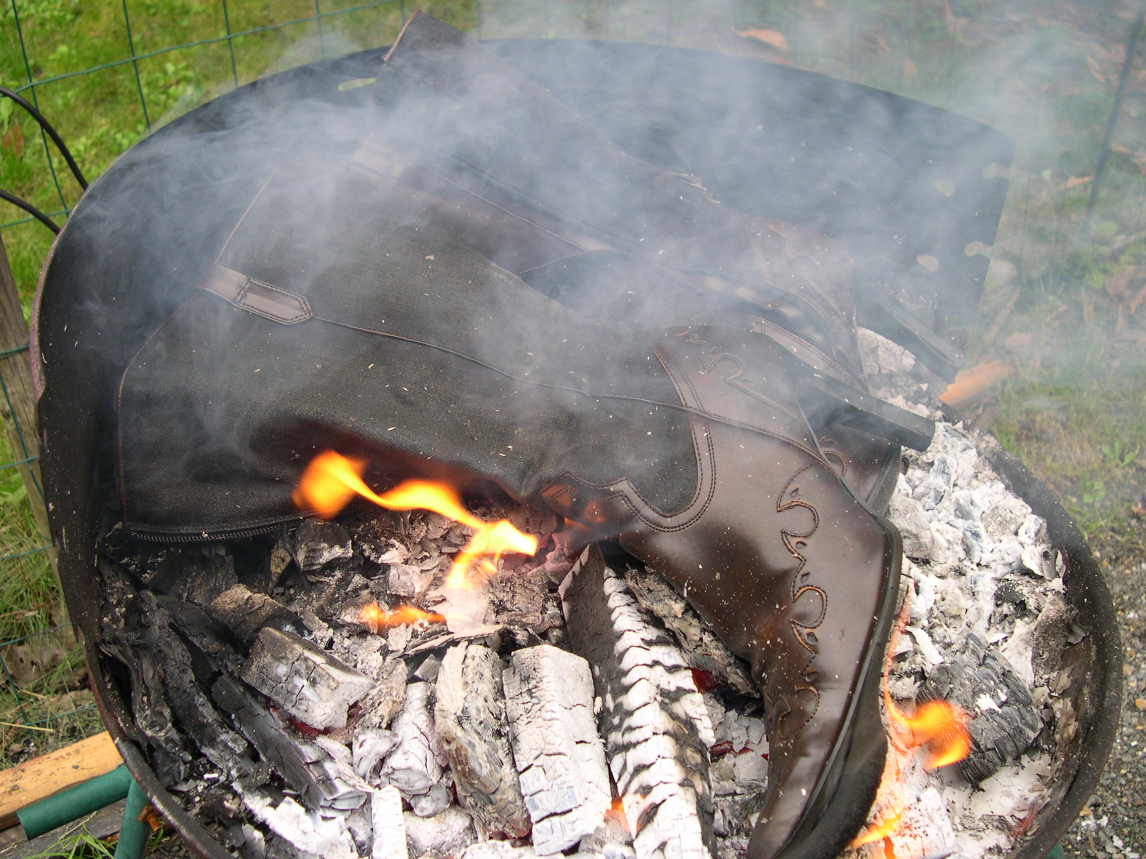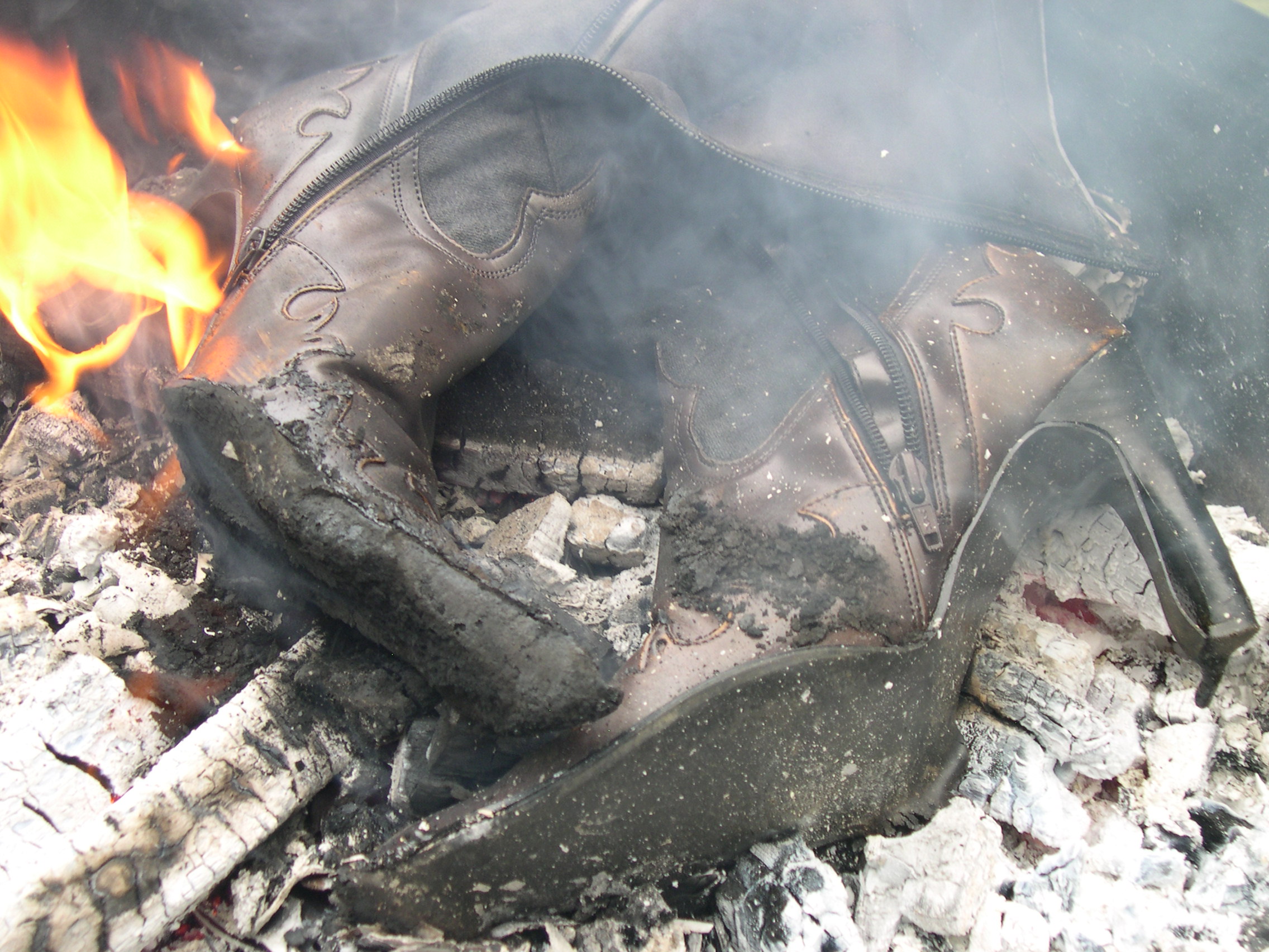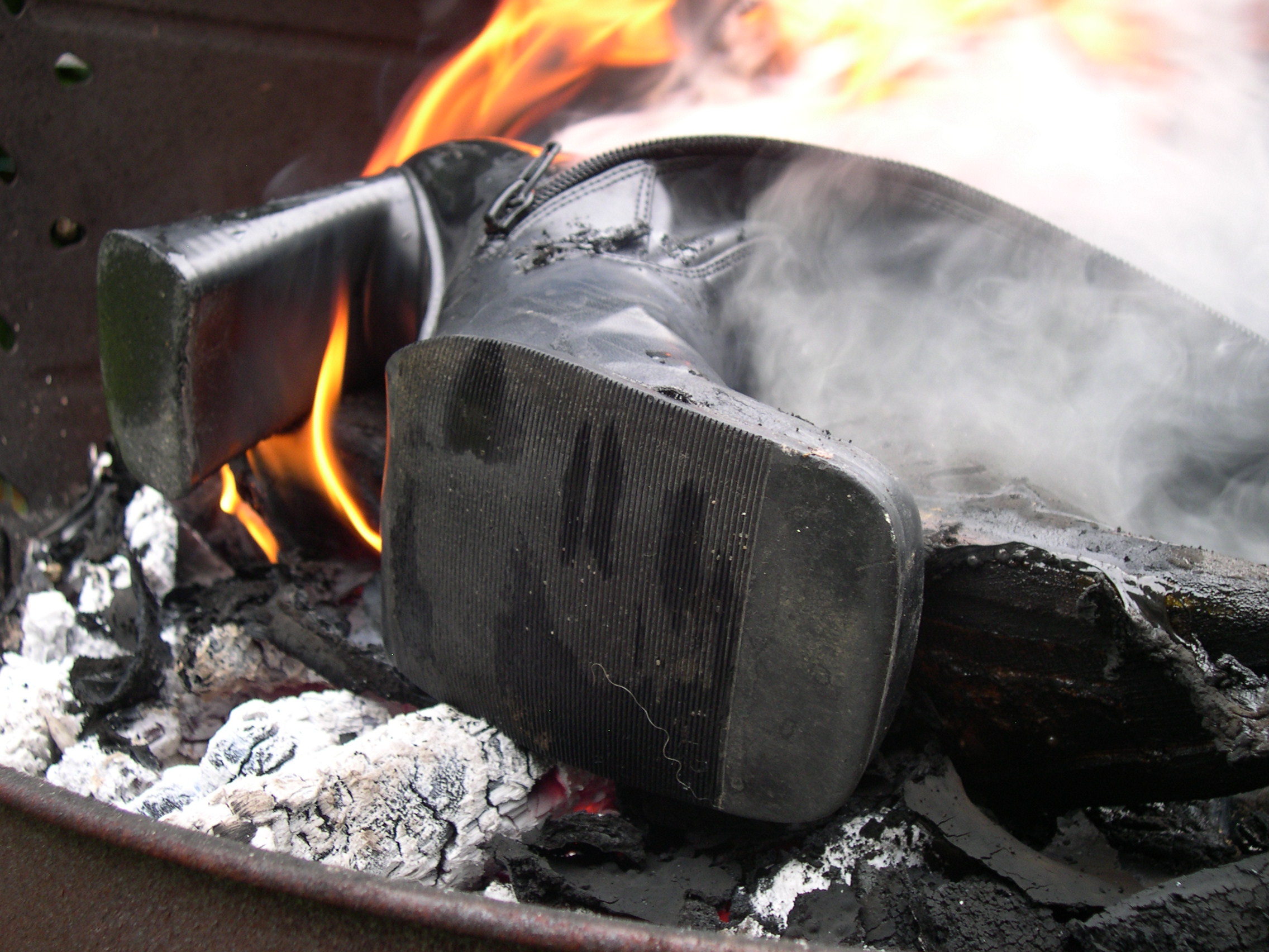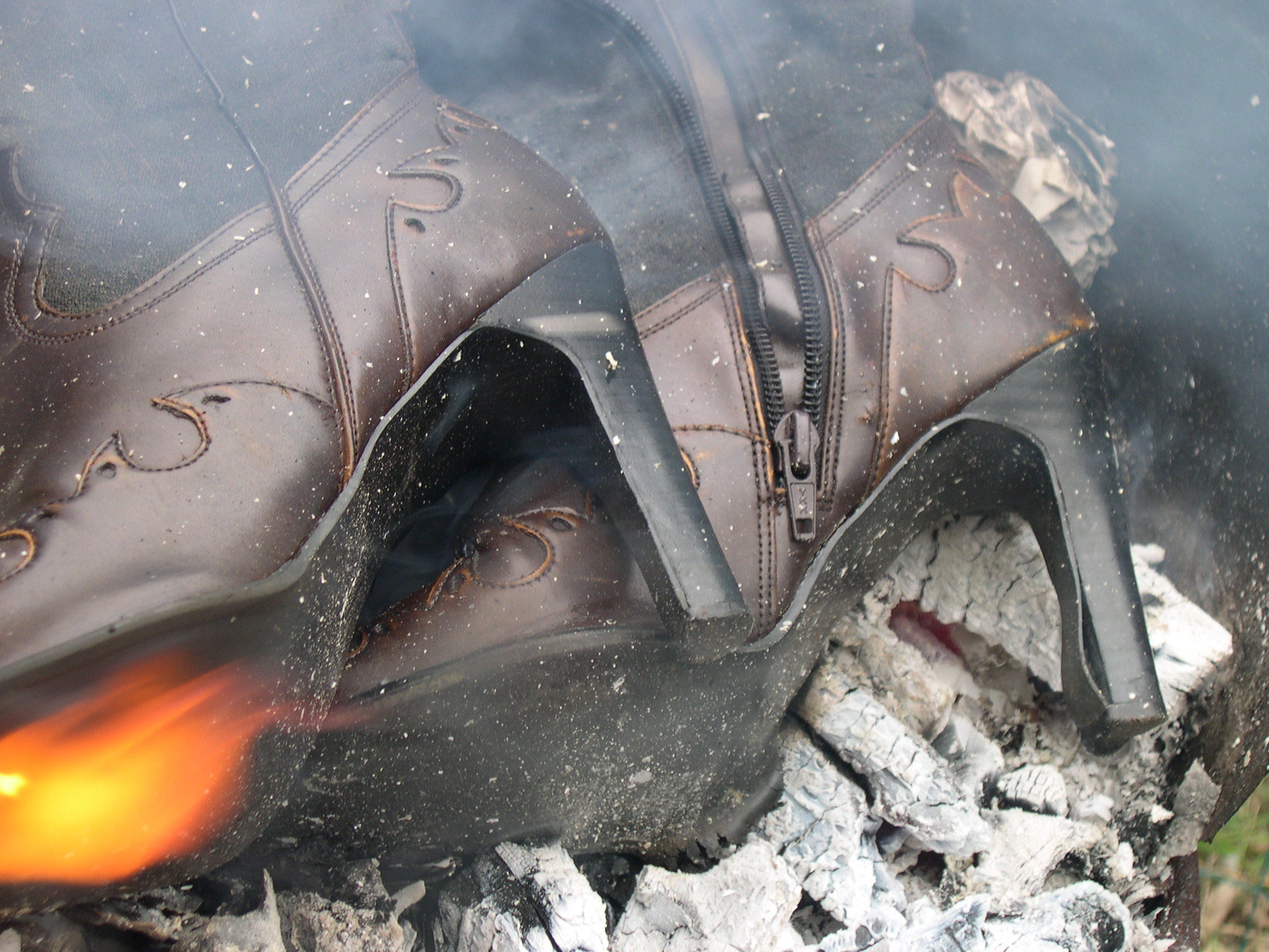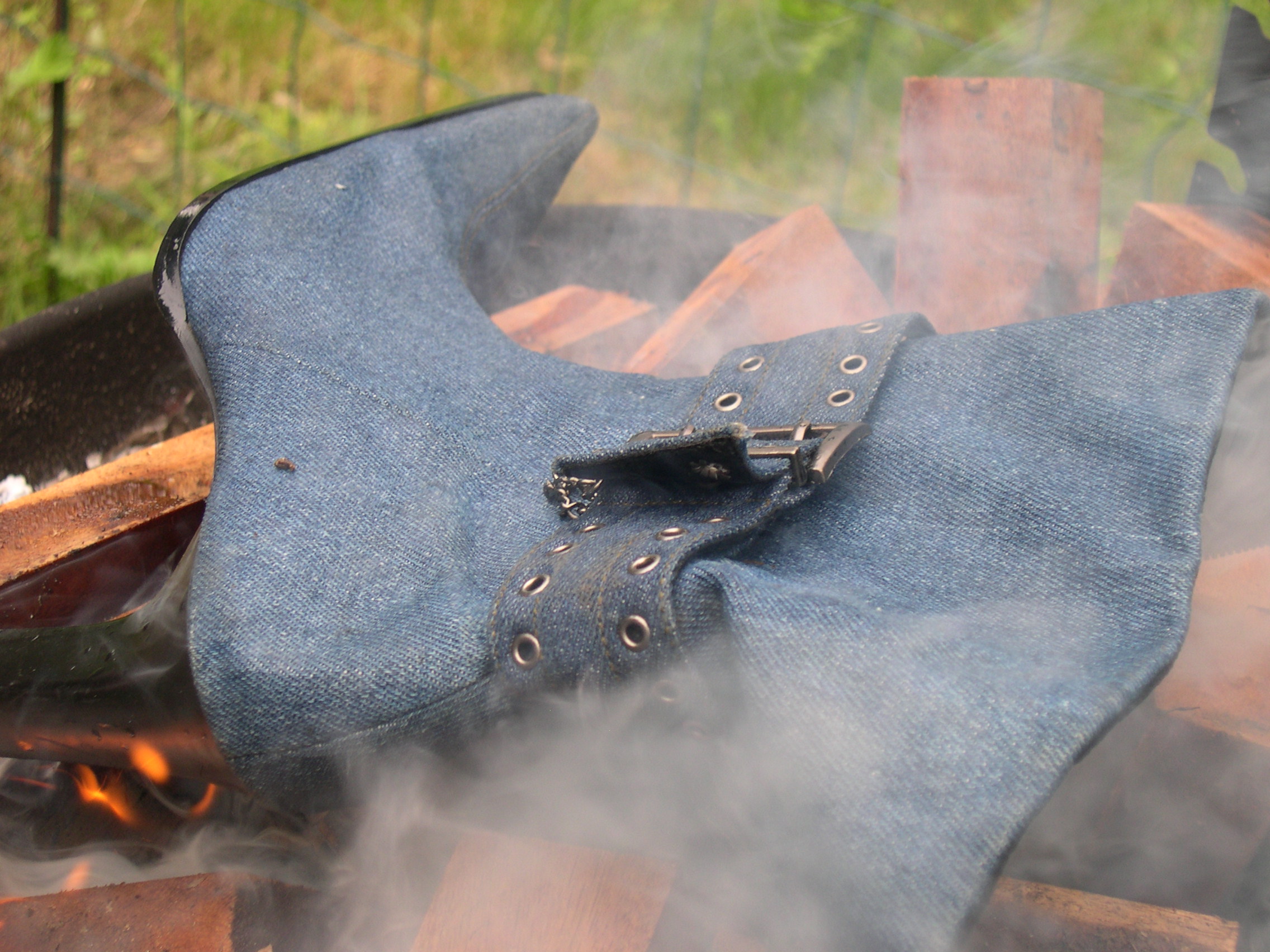die Stiefel haben ja einiges mitgemacht bevor sie dem Feuer geopfert wurden. Da schlägt das Herz und der Prügel ganz schön.
