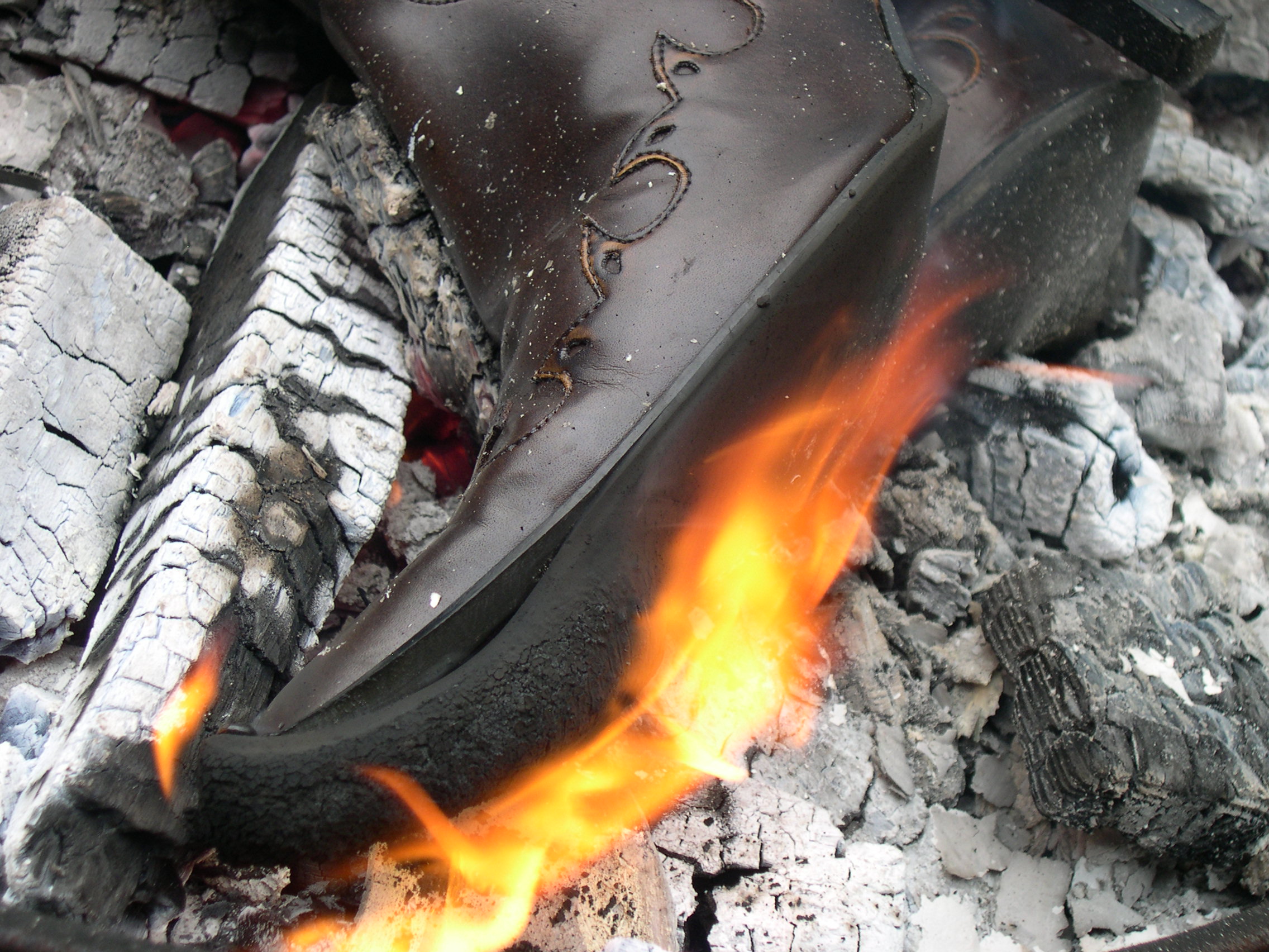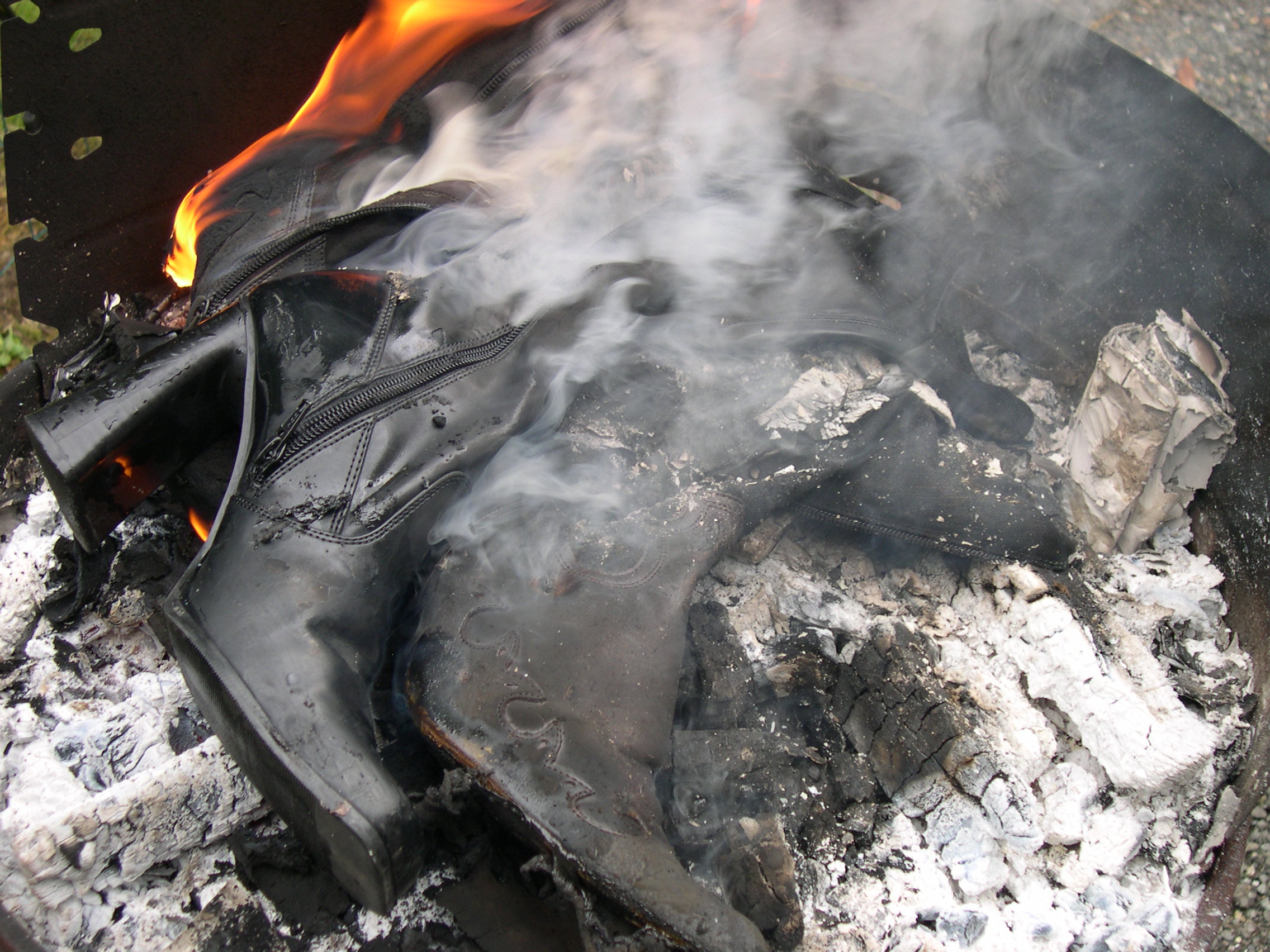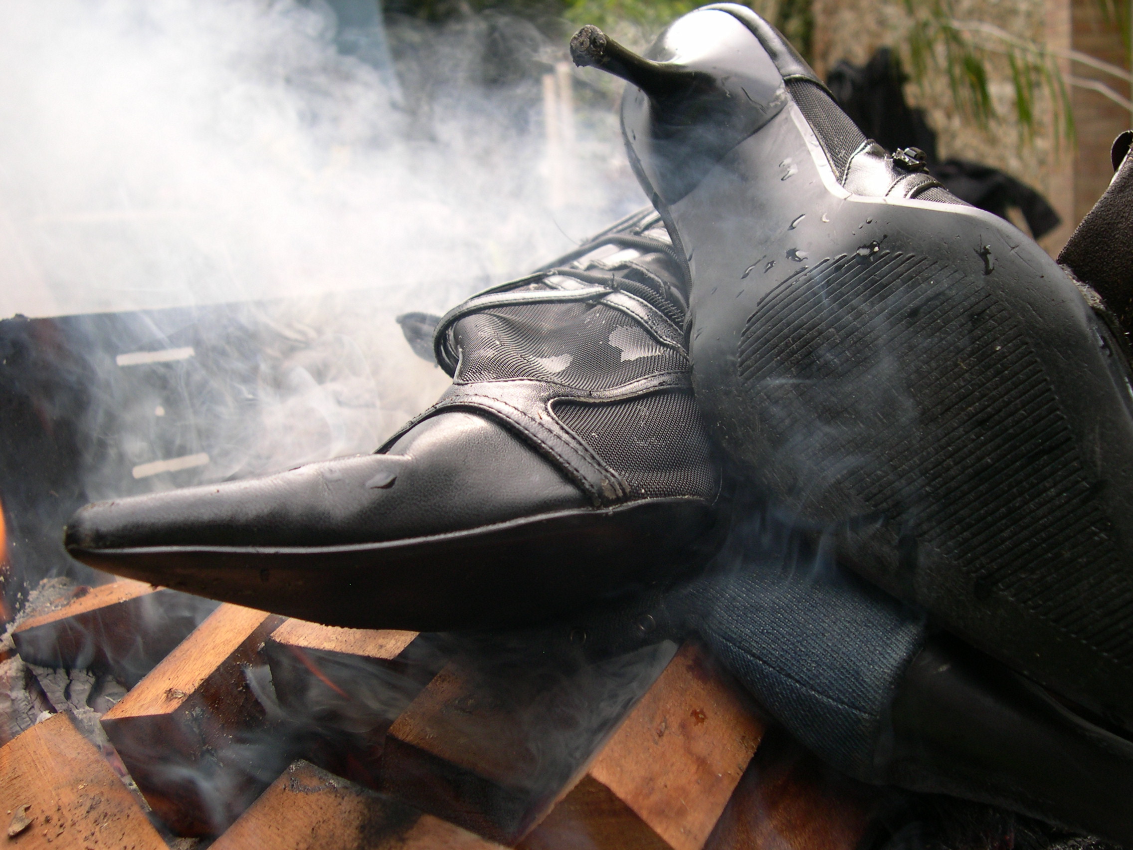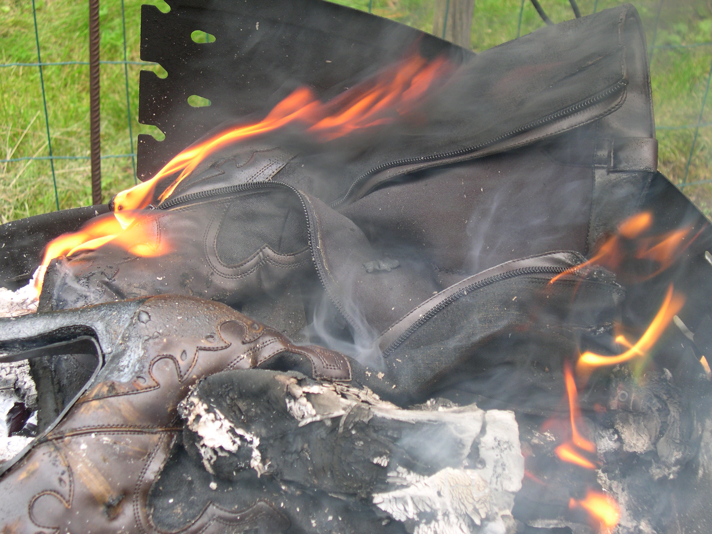 die Stiefel haben ja einiges mitgemacht bevor sie dem Feuer geopfert wurden. Da schlägt das Herz und der Prügel ganz schön.