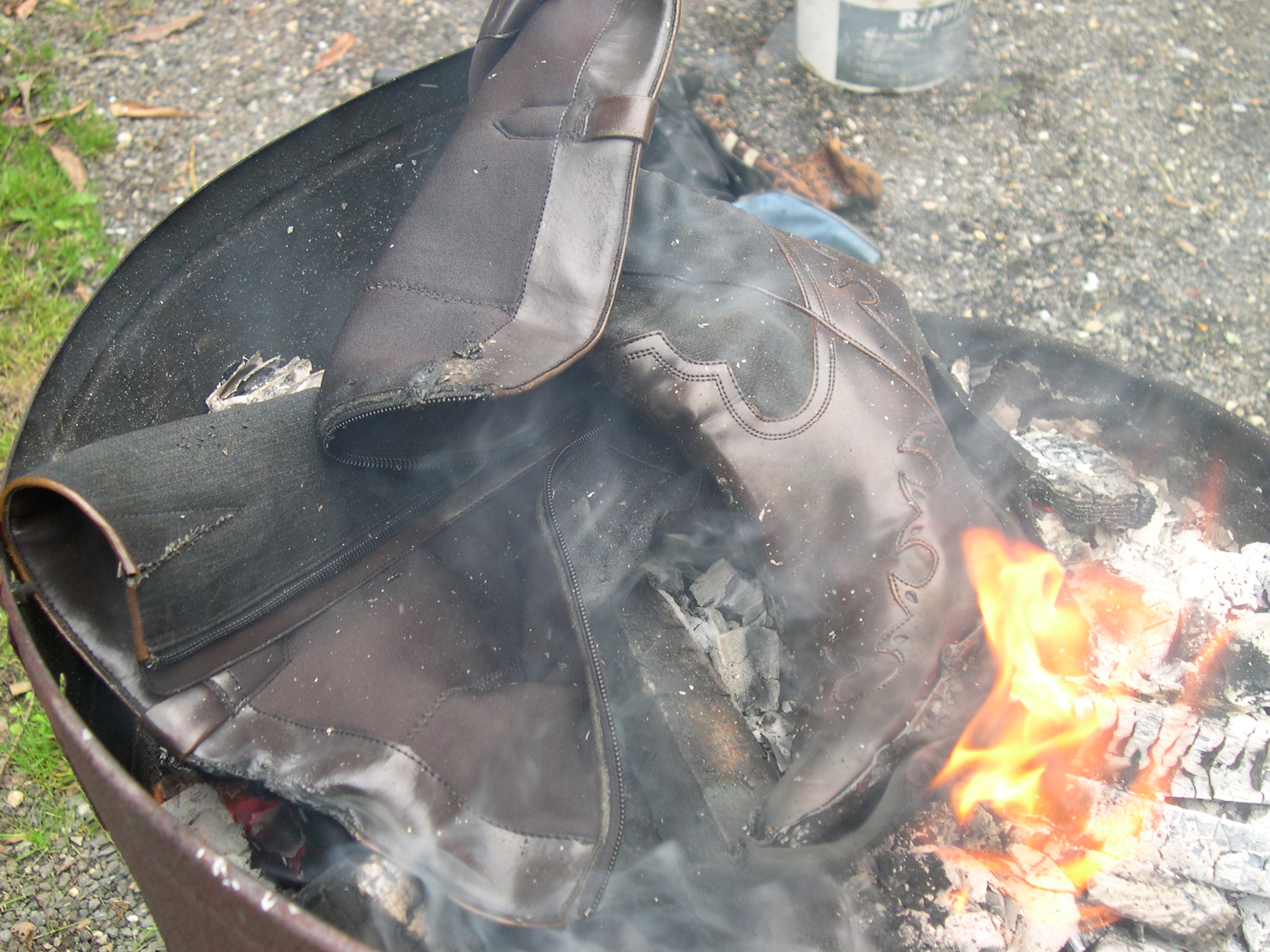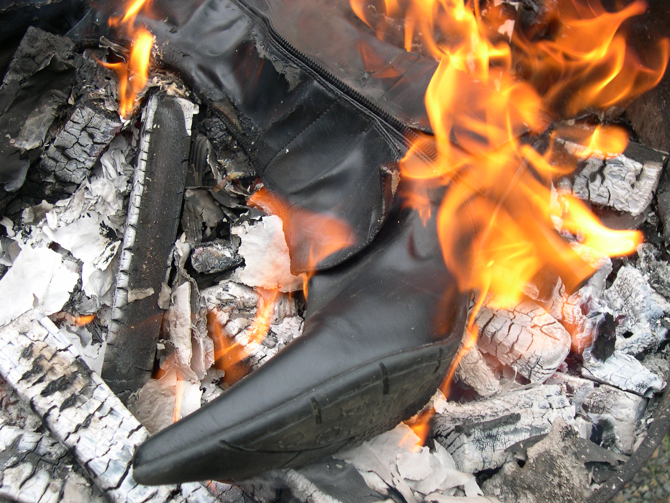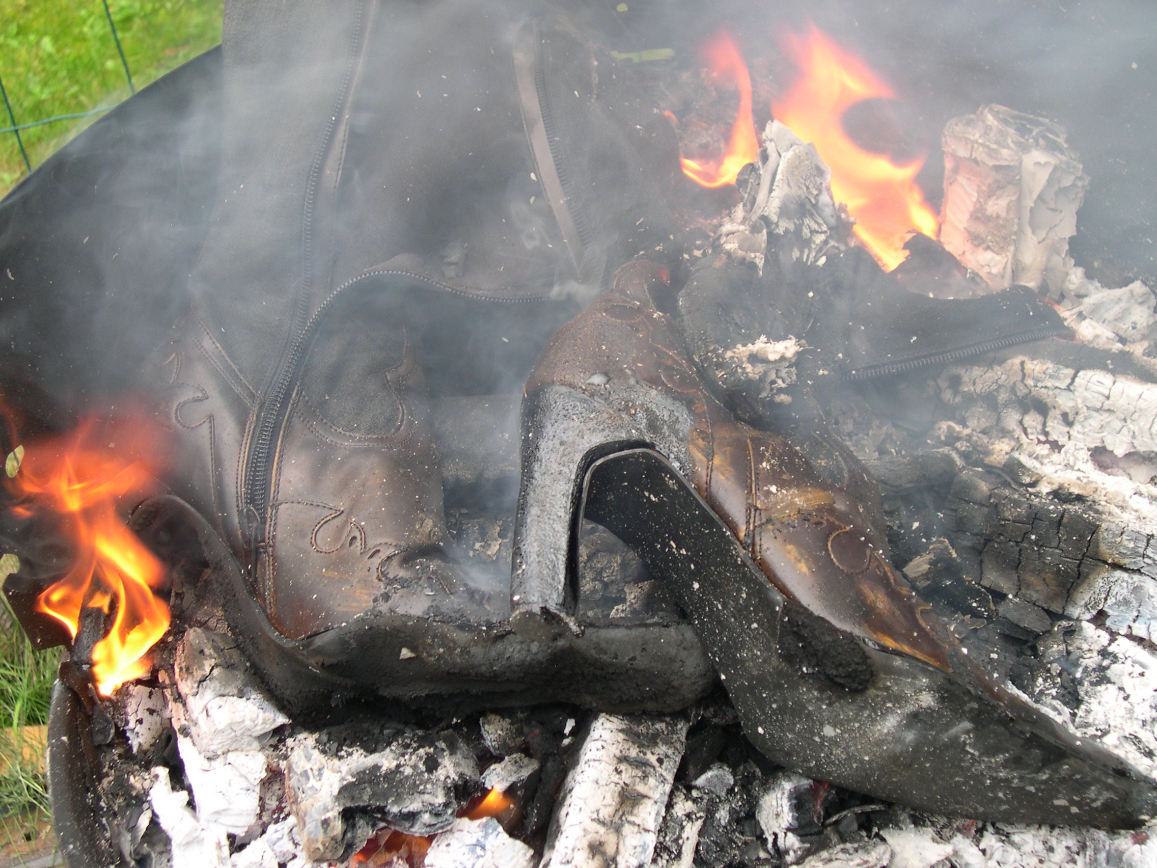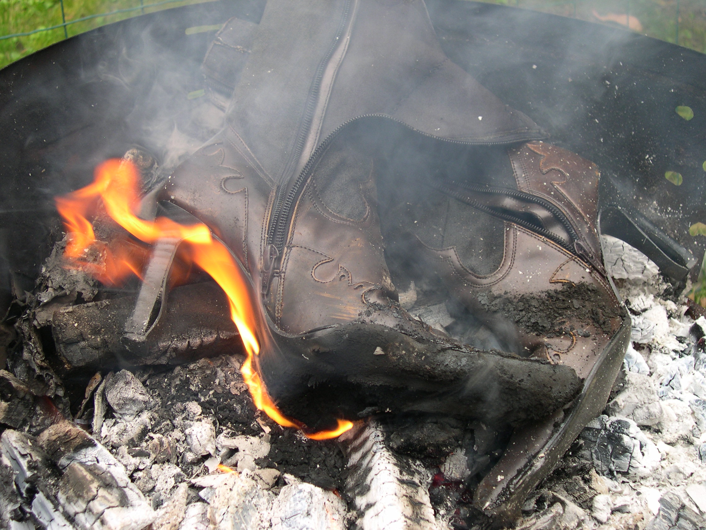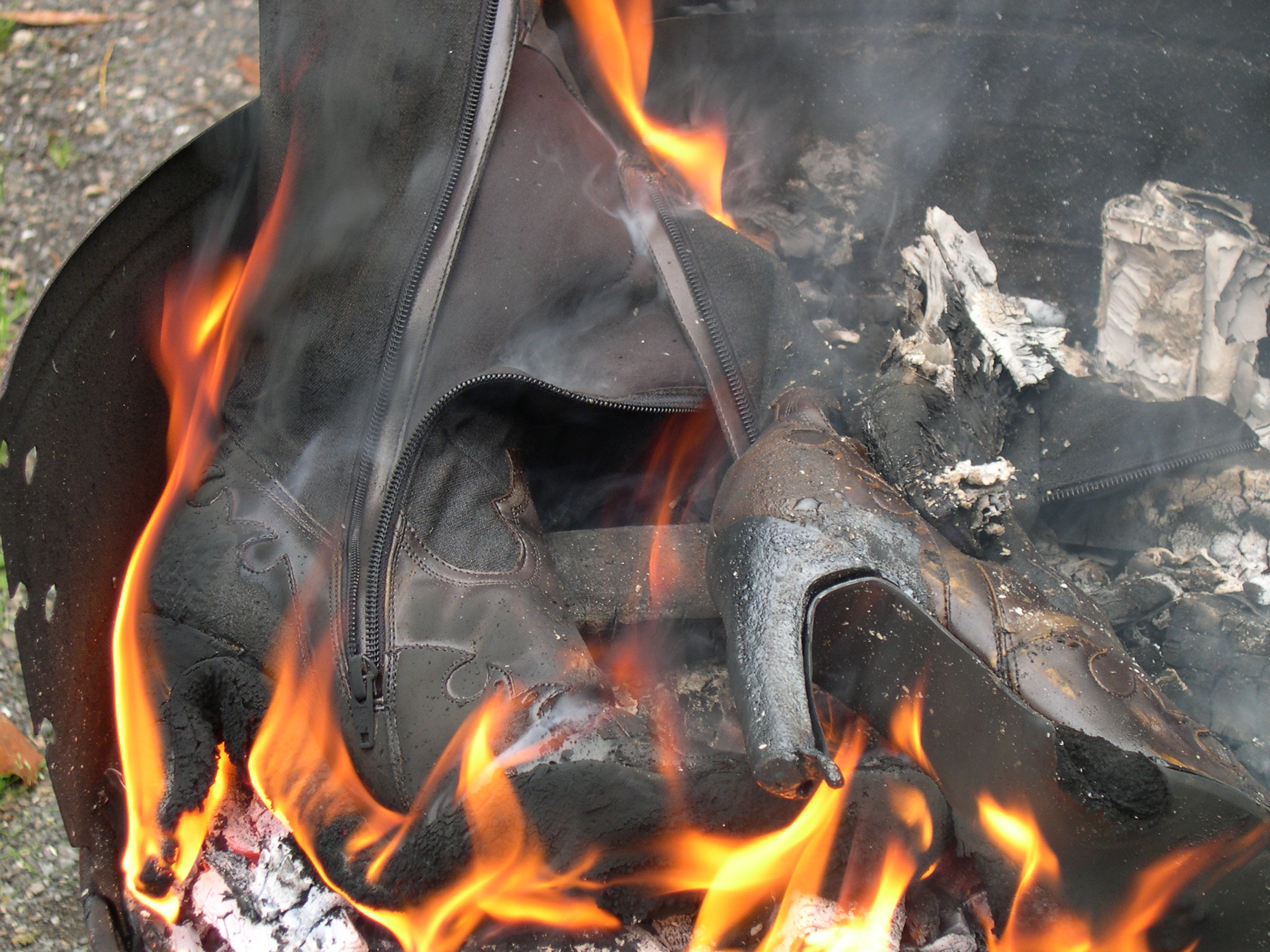 die Stiefel haben ja einiges mitgemacht bevor sie dem Feuer geopfert wurden. Da schlägt das Herz und der Prügel ganz schön.