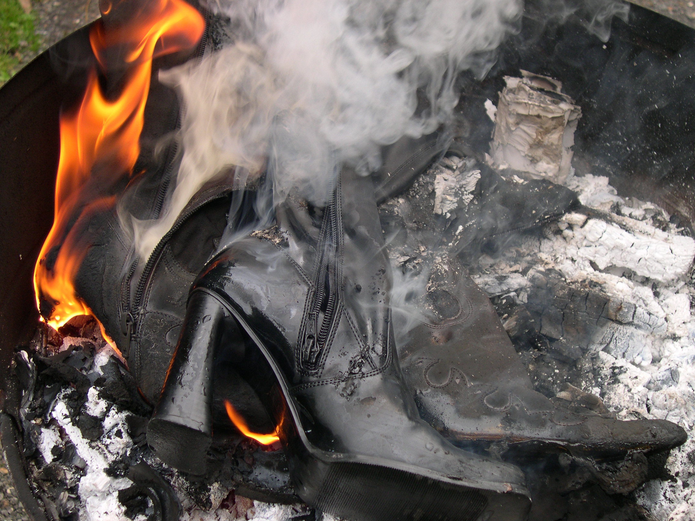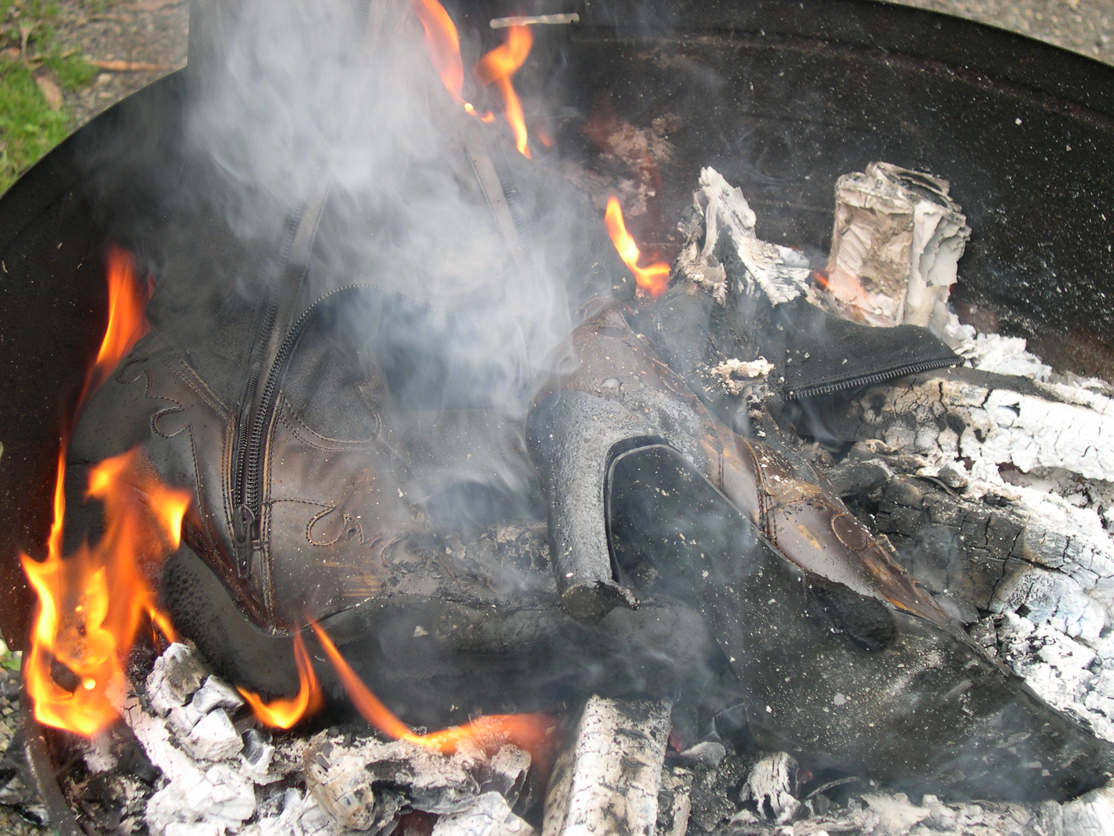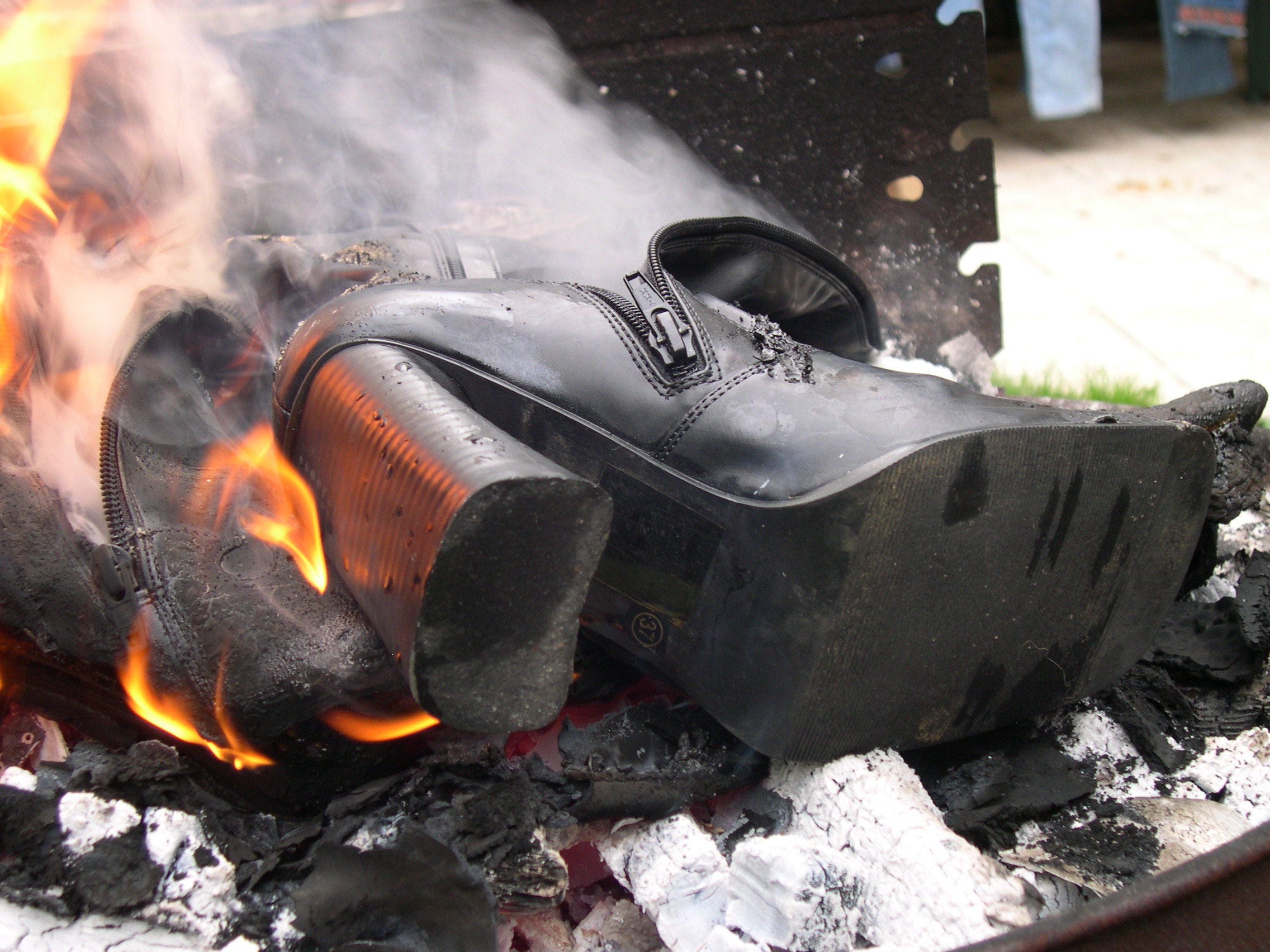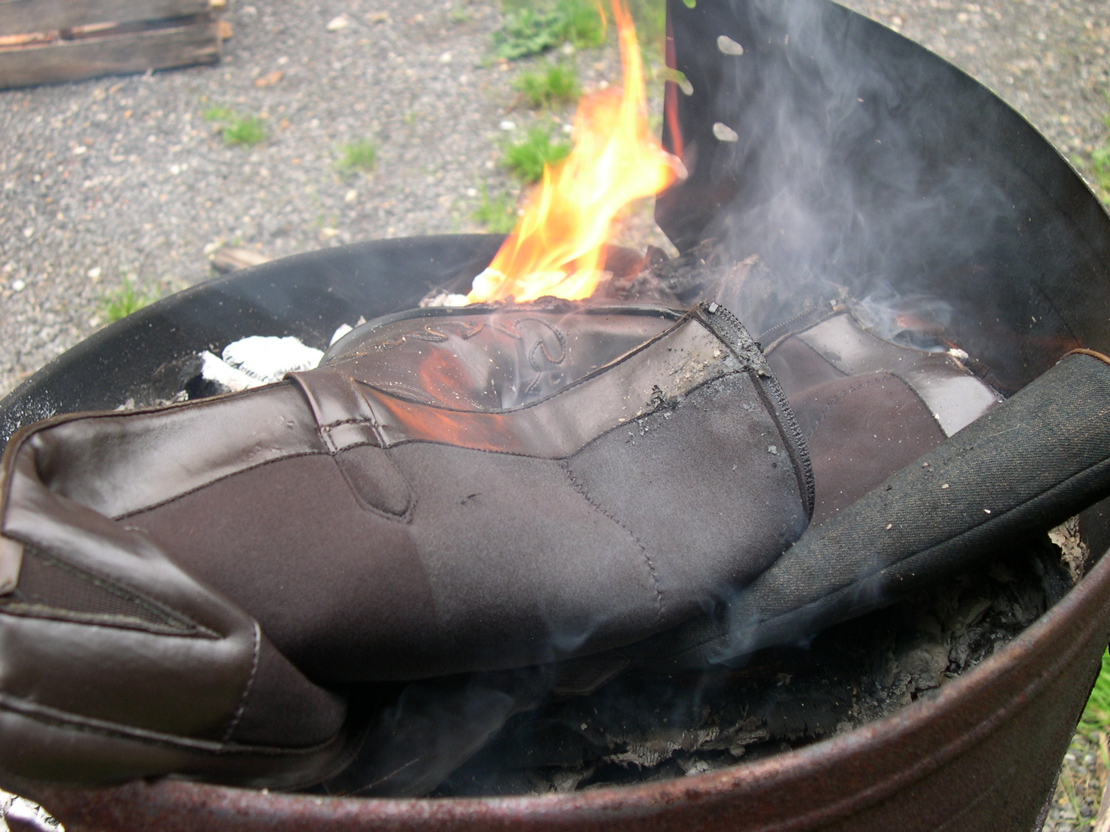 die Stiefel haben ja einiges mitgemacht bevor sie dem Feuer geopfert wurden. Da schlägt das Herz und der Prügel ganz schön.