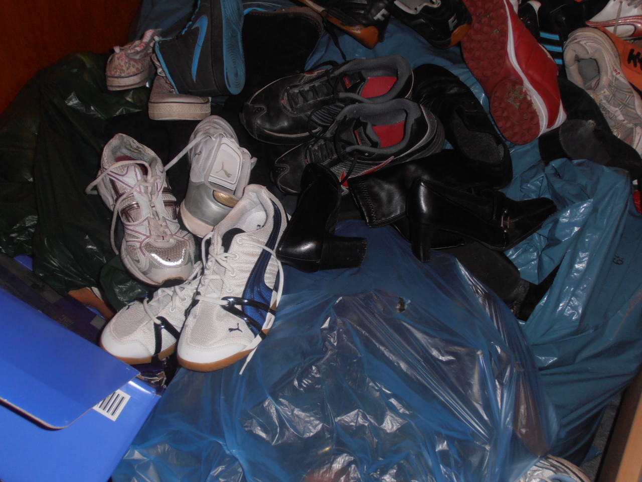was für ein traum- sooo viele schuhe....sind die high schwarz-blauen nike´s zu haben?lg...
