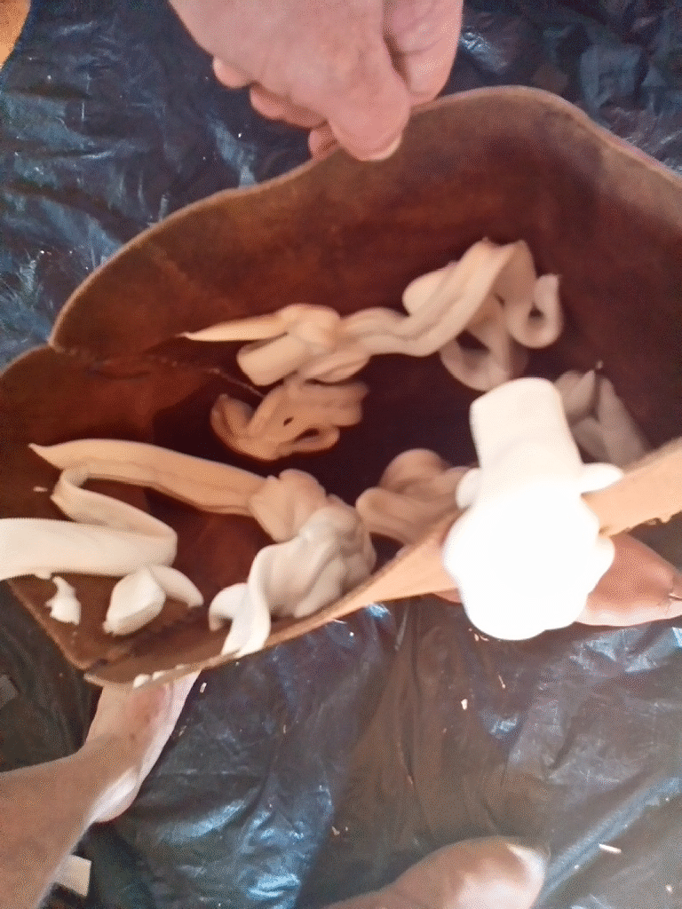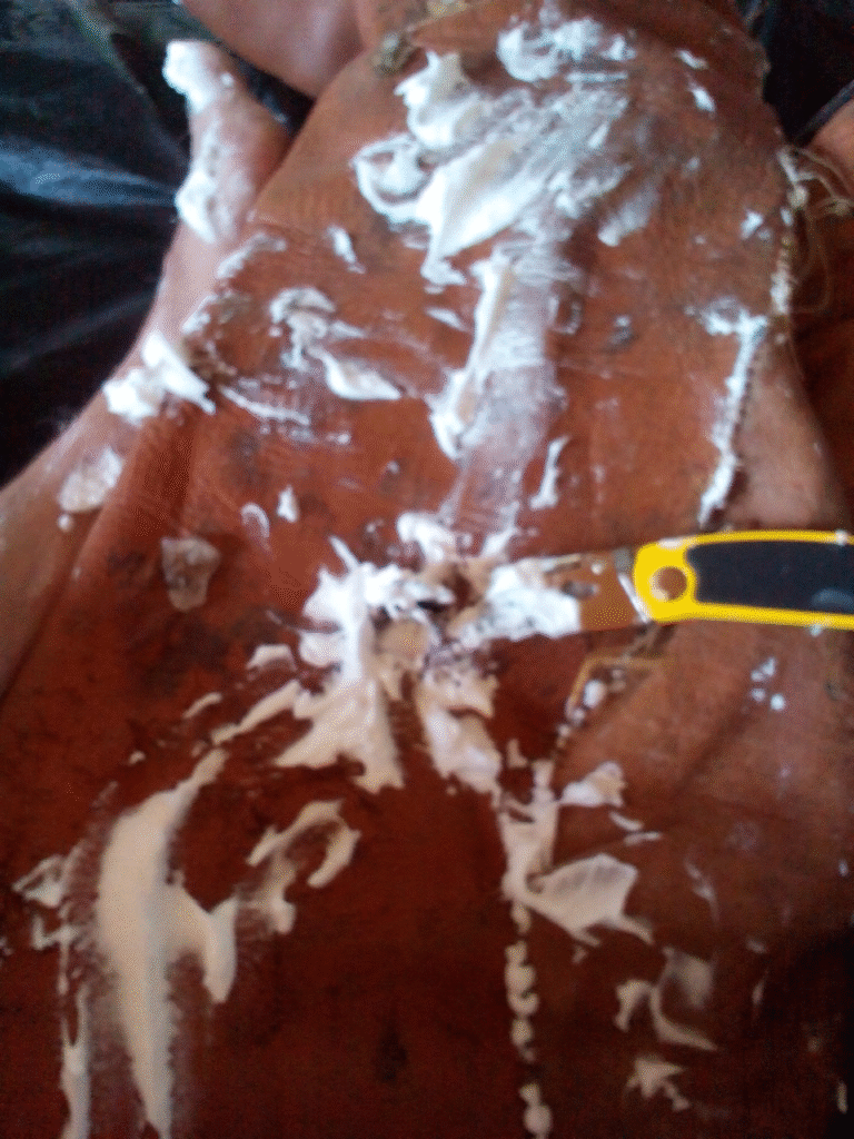 Musste aber einen Cutter nehmen, Leder zu zäh...