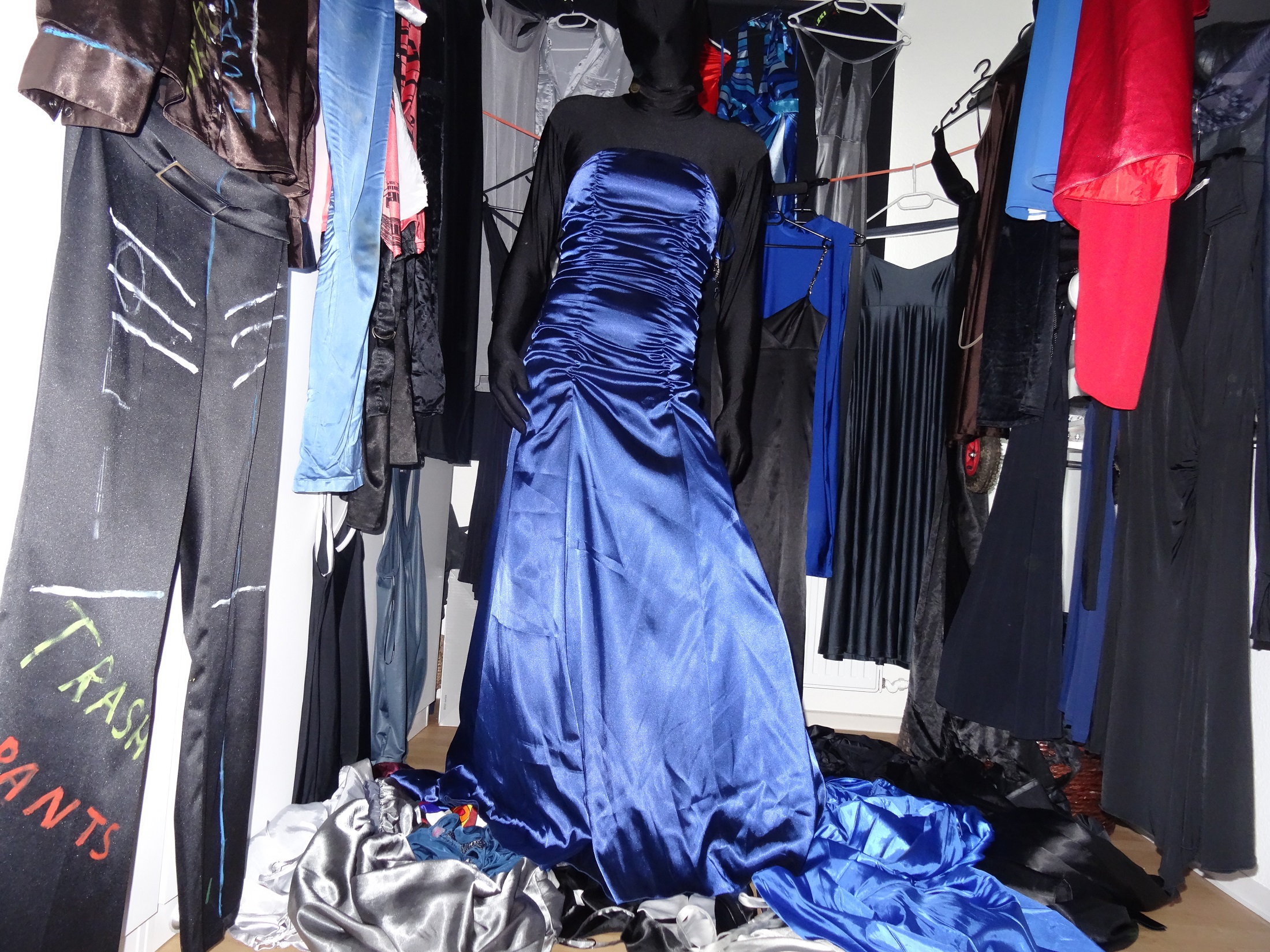 das blaue Kleid ist glaub ich nur einmal zum Ball in Österreich getragen worden, hier gibts dafür keine Verwendung mehr, also weg damit!