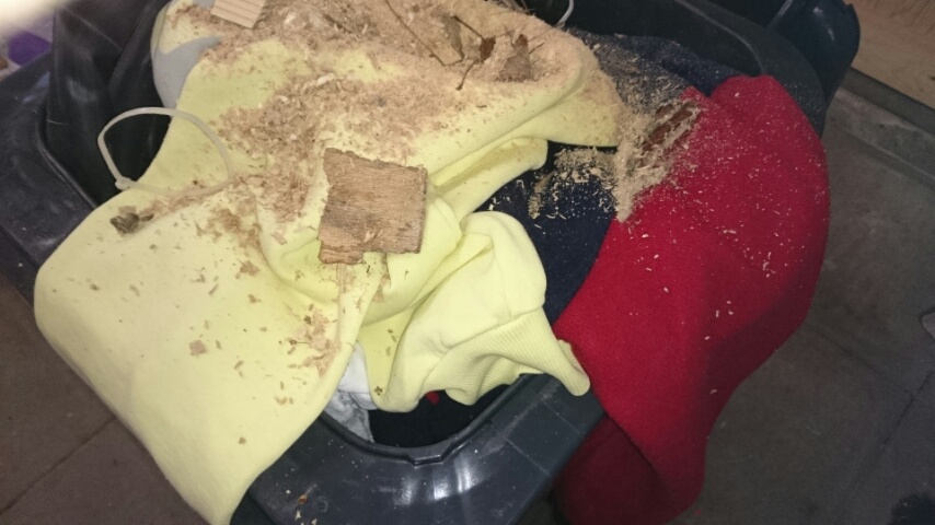 Mit einem traurigen Blick schauten mich mein gelber Nike und darunter meine Collegejacke an. Es lag etwas Unrat auf ihnen, sah aus wie Holzspäne etwas Laub und Staub, aber egal , ich riss sie heraus ……… gerettet!!!!