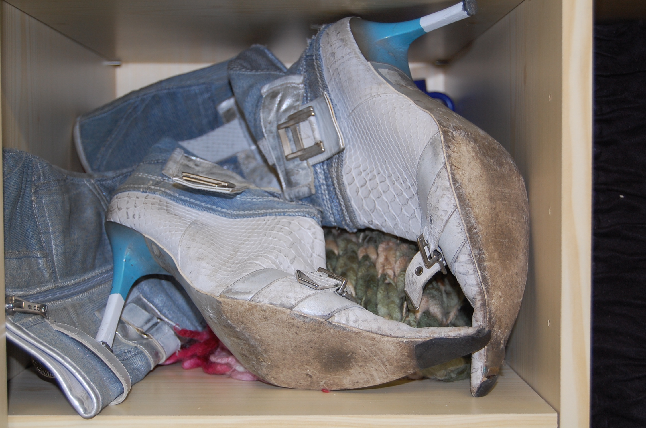 „Ich habe sie zu allen möglichen Gelegenheiten getragen. Sie haben dabei eine ganze Menge mitgemacht. Aber nun wird es wohl Zeit für sie, sie in den Müll zu werfen. OK, die Absätze würden es noch eine Weile machen, aber der Gesamtzustand ist sehr schlecht. Noch drei weitere Wochen an meinen Füßen und sie zerfallen endgültig in ihre Bestandteile. Die einzige die darüber traurig sein wird, dass die Stiefel nun in den Müll wandern, ist meine Schwester, denn sie hatte sie sich immer gerne ausgeliehen, um damit den Jungs den Kopf zu verdrehen. „