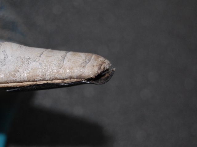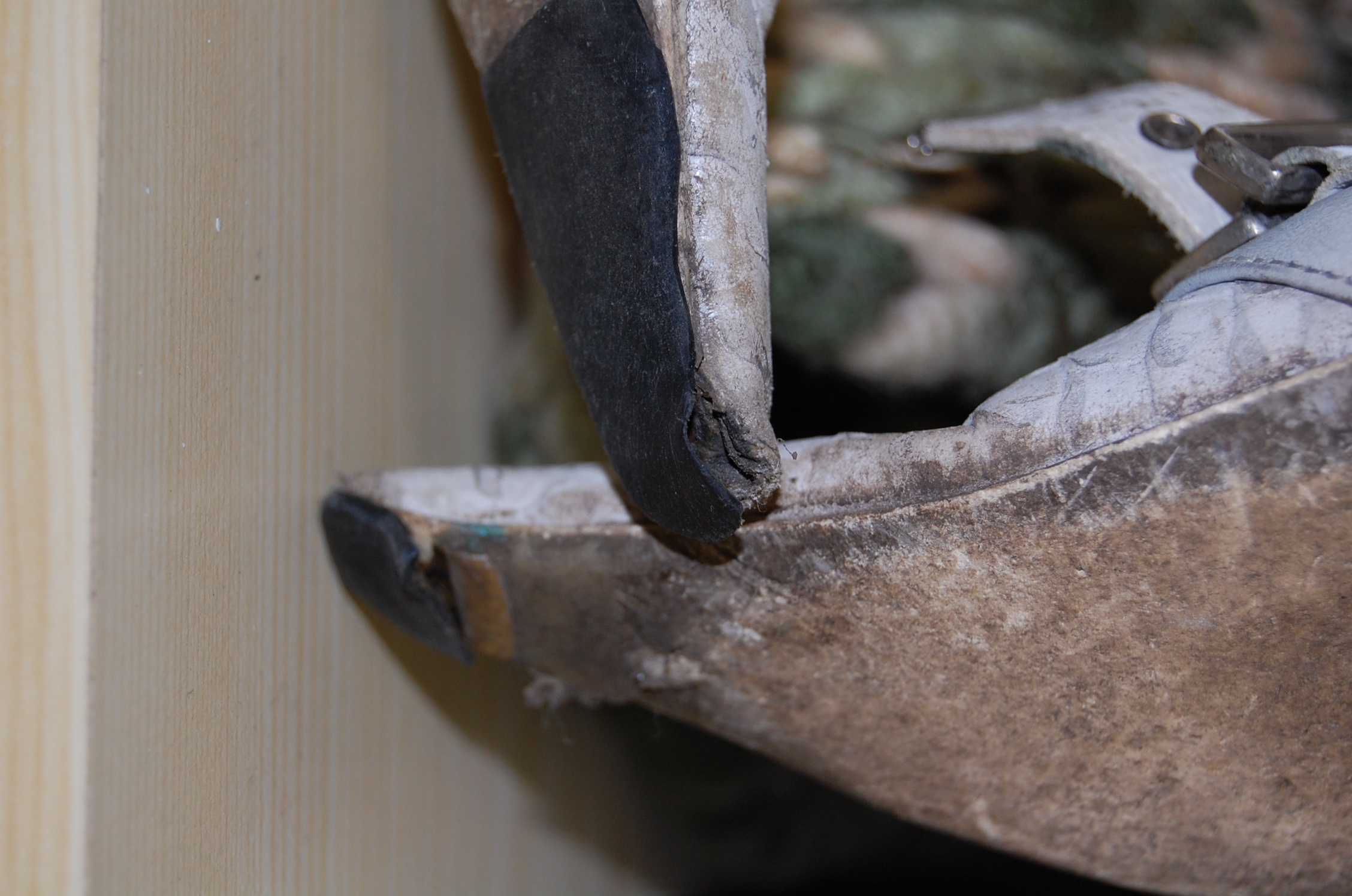 “The boots are very well worn and totally trashed. Now I throw them into the garbage”, waren ihre Worte. “I think it is better to dispose of them. They are ready for going to trash. The tips are perforated. The tips are worn through. The stitching on the shaft is broken. The soles are very thin and shortly front end.“