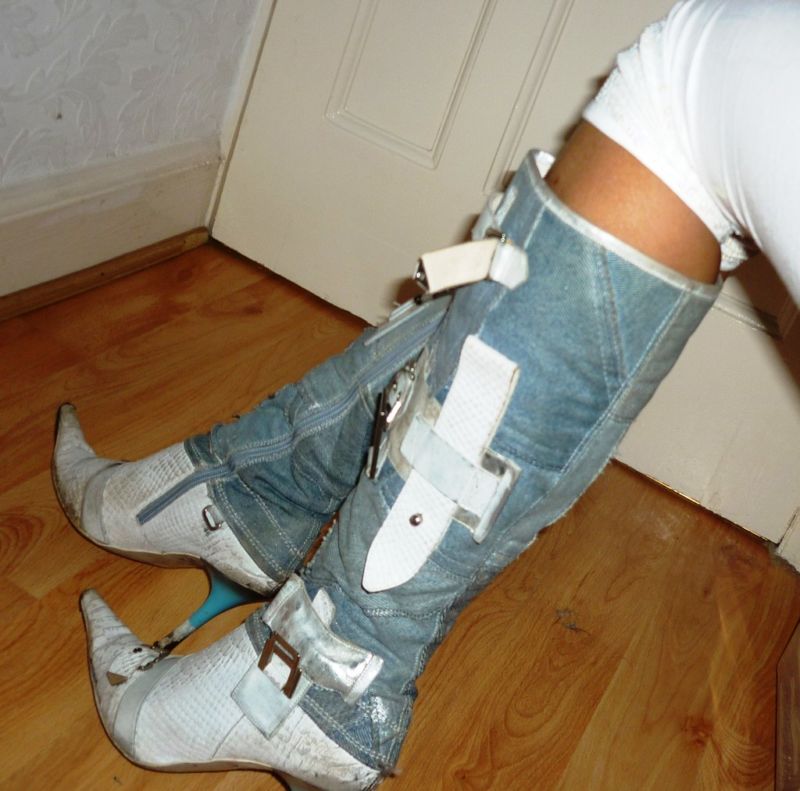 So wechselten diese Designerstiefel für 85,00 Pfund die Besitzerin, die ziemlich happy über diesen gelungen Deal war. Die Stiefel wurden regelmäßig ausgeführt. Durch die Beanspruchung war dann ein Austausch der Absatzplättchen erforderlich, der fachmännisch ausgeführt wurde. Dann, nach einem dreiviertel Jahr erlitt die Frau einen Freizeitunfall, der es ihr von da ab nicht mehr ermöglichte, High Heels zu tragen. Dieser Umstand mag für manche Frau einer Tragödie gleichkommen, aber in diesem Fall wurde die Situation mit Fassung getragen. Die High Heels wurden aussortiert und für den Altkleiderkontainer eingetütet. Durch ein Gespräch bei der Arbeit interessierte sich eine Arbeitskollegin für die Schuhe. Diese Kollegin verfügte als alleinerziehende Mutter von drei Kindern über kein allzu großes Einkommen. Am nächsten Tag bekam die Kollegin die Tragetasche mit den aussortierten Stöckelschuhen, um sich die besten herauszusuchen und den Rest, der keine Verwendung findet, im Altkleiderkontainer zu entsorgen.