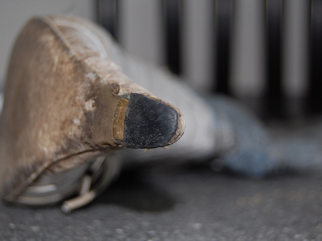 Die Auszubildende schonte die Stiefel kaum. insbesondere am Wochenende, wenn sie mit ihrer Clique loszog waren sie fast immer und überall mit dabei. Nach einigen Monaten Dauereinsatz waren die Sohlen glatt und dünn. Die ursprünglich „abriebresistenten“ Sohlen wurden extrem dünn und die durch zusätzliche Metallplättchen verstärkten Spitzen waren schlicht und ergreifend weggelatscht und die Reste der Metallplättchen waren auf eine wirkungslose Größe reduziert.