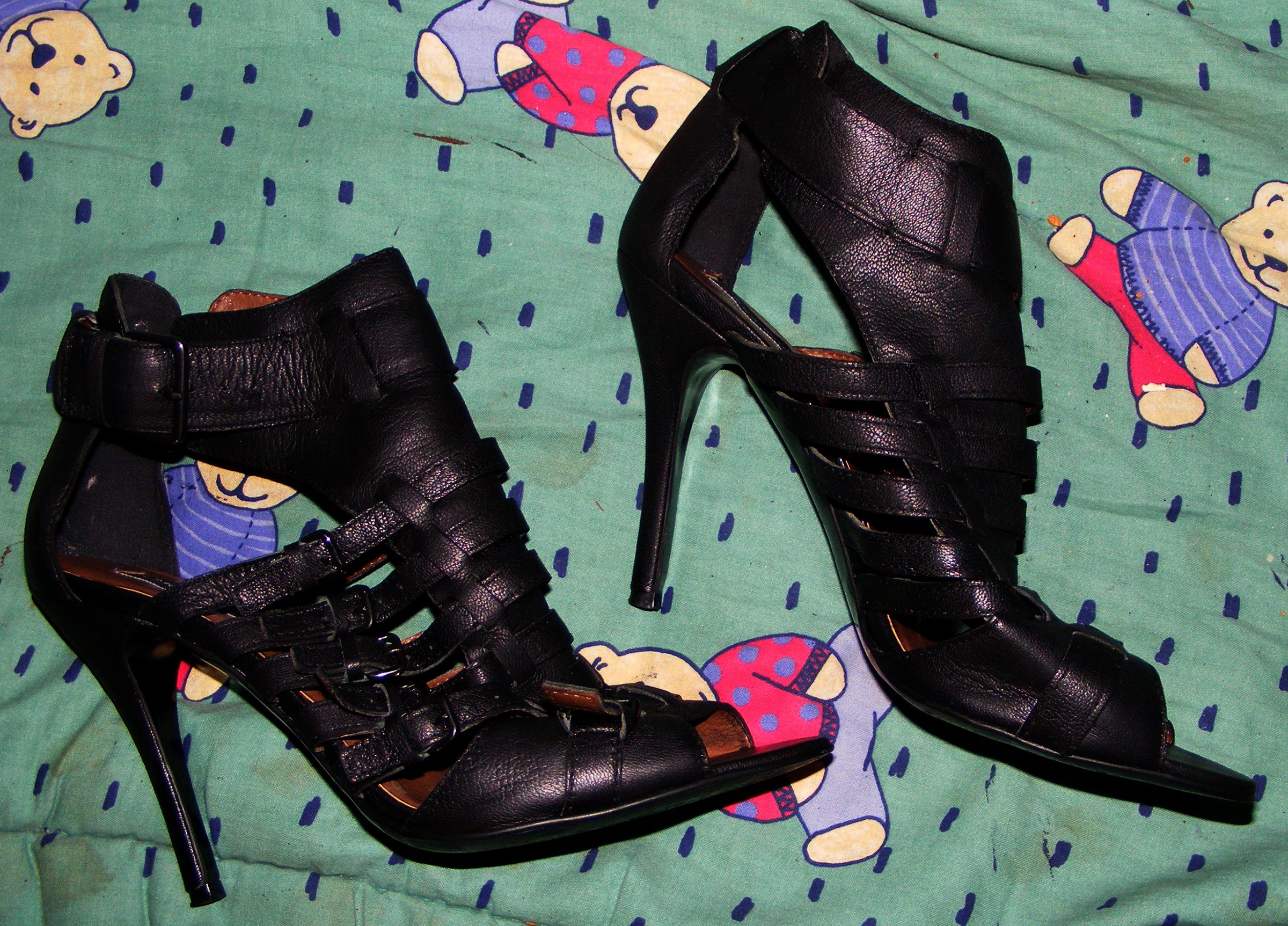 Nun, ich bin ja bekanntermaßen keine "Sandalenfreundin" - aber, da gibt´s von Zara so richtig erregende Echtlederteile, daß mein Mann beim Anblick an meinen Füßen ganz gewaltig ins Sabbern kommt. Das sind z.B. meine "gequälten Hausschuhe". Da ist reichlich "Mundspielzeug" dran!