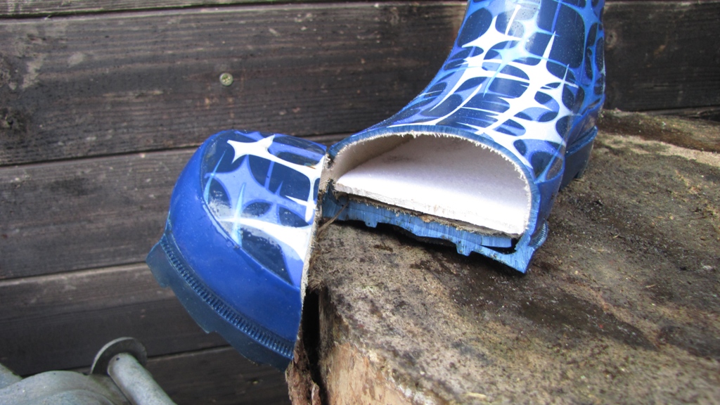 Reparieren kommt für diesen zugegebenermassen netten Gummistiefel nicht in Frage. Meine Freundin wird ihn auch nicht mehr tragen wollen, da sie schlechte Erinnerungen daran hat, folglich werde ich mich um die Stiefel kümmern müssen :twisted:
