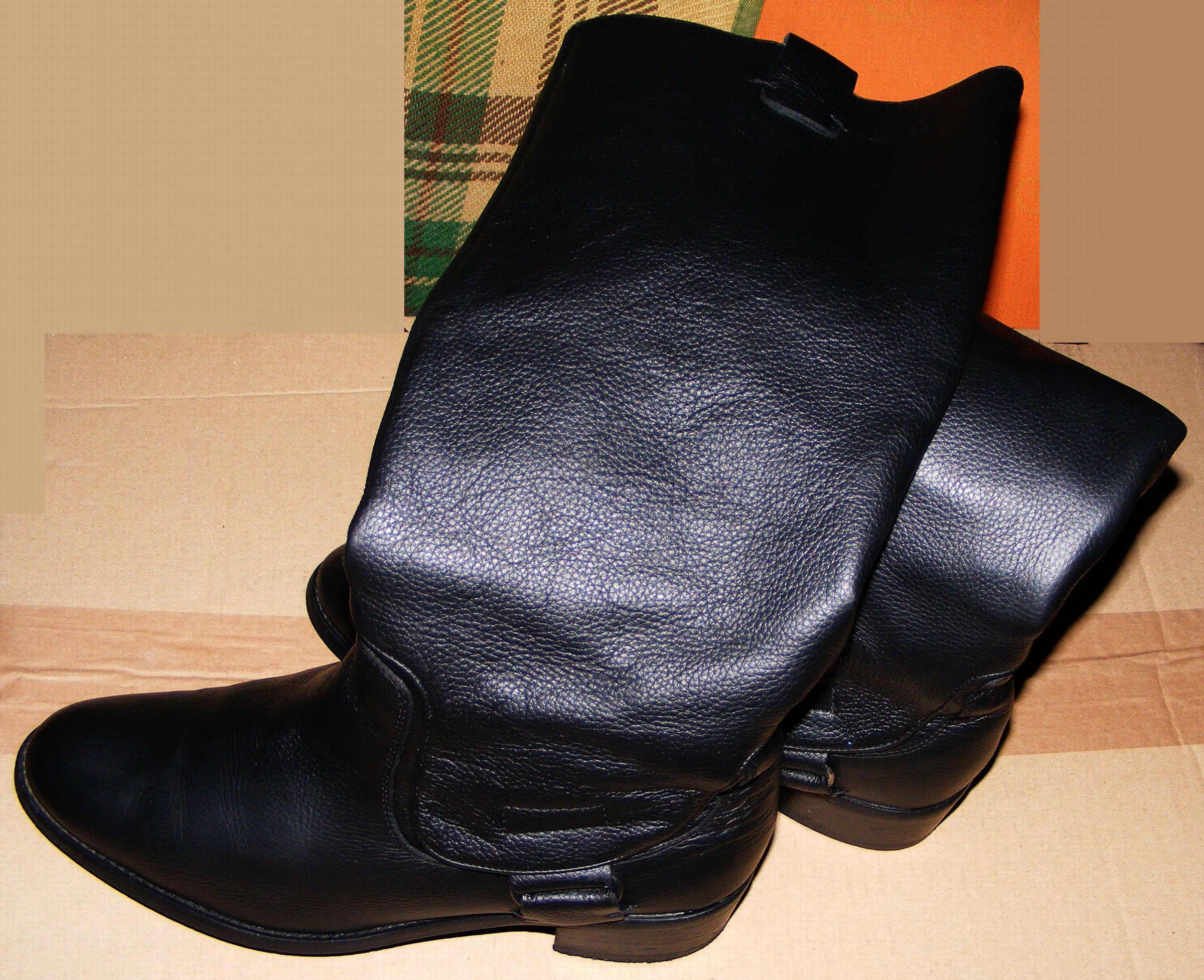 Als sie gekauft wurden muß sich die Vorbesitzerin doch Etwas dabei gedacht haben, sie müssen ihr doch irgendwie gefallen haben, schließlich wurden sie ja reichlich getragen, sogar die Absatzbeläge waren zwischenzeitlich erneuert worden. Also waren sie vermutlich auch nicht "zu klein, zu eng" oder Ähnliches. Und, einen plausiblen "modischen" Grund dafür gibt´s auch nicht: Schwarze Reitstiefel sind niemals "unmodern", die konnte man in den letzten 100 Jahren täglich tragen!