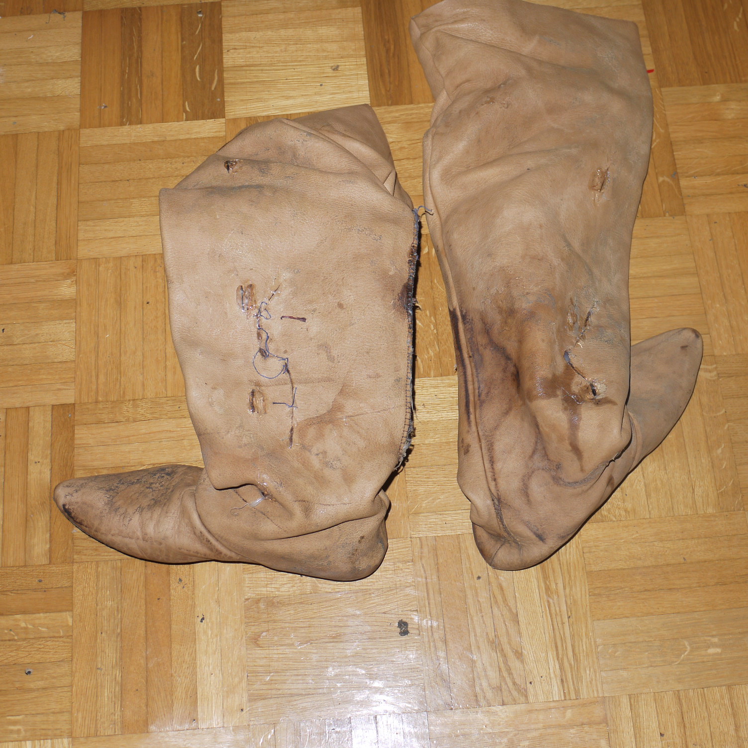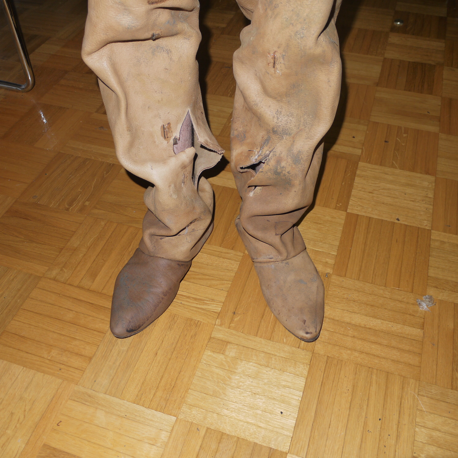 sind die Stiefel noch mal für den outdoor-einsatz notdürftig geflickt worden.