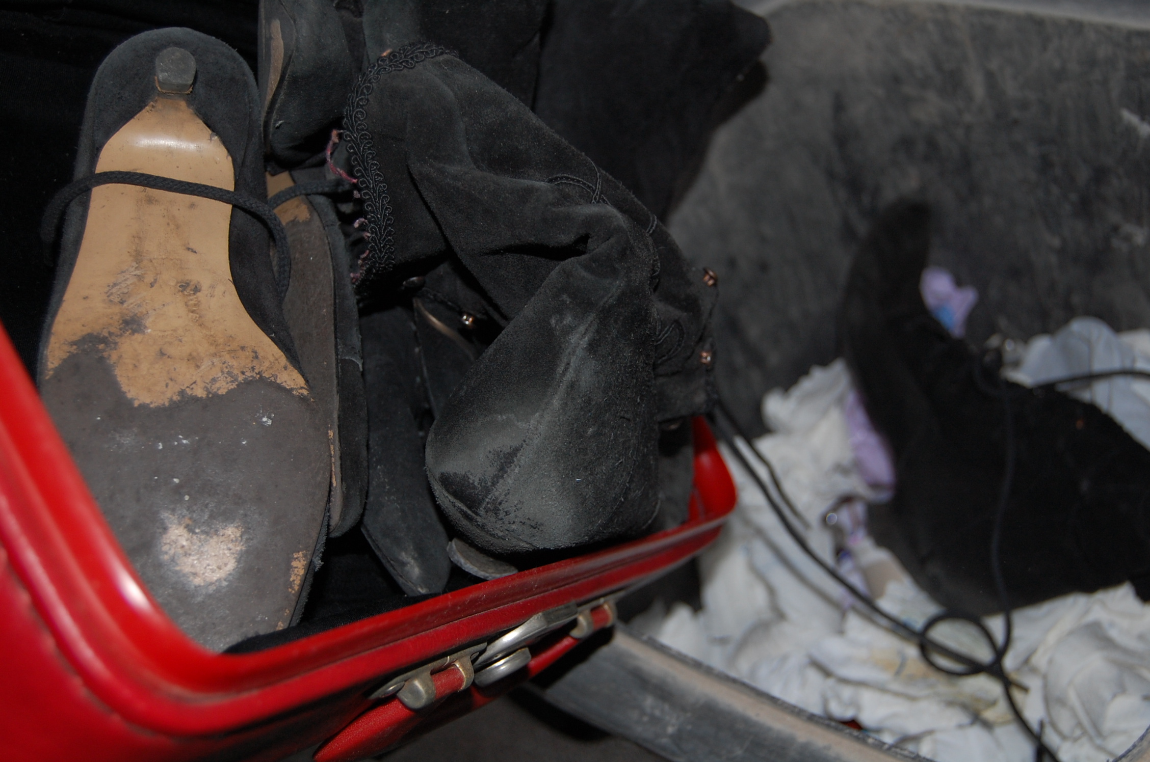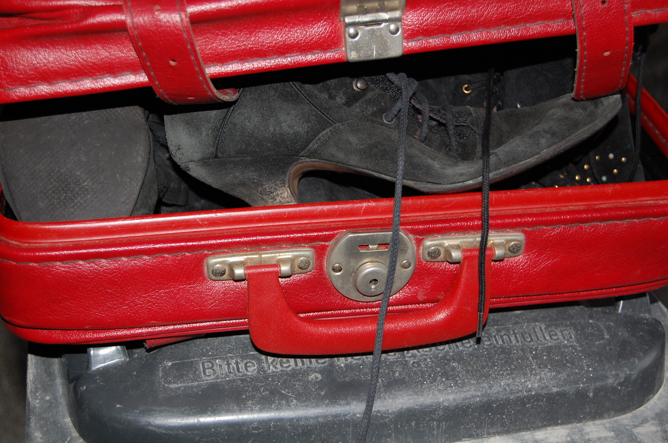 der rote Koffer und die roten Vampire-Boots passen doch bestens zusammen. Na der nette Vintage-Koffer braucht nicht einmal zur Reparatur. Klarer Fall: Boots und Koffer sind erhaltenswert :!: