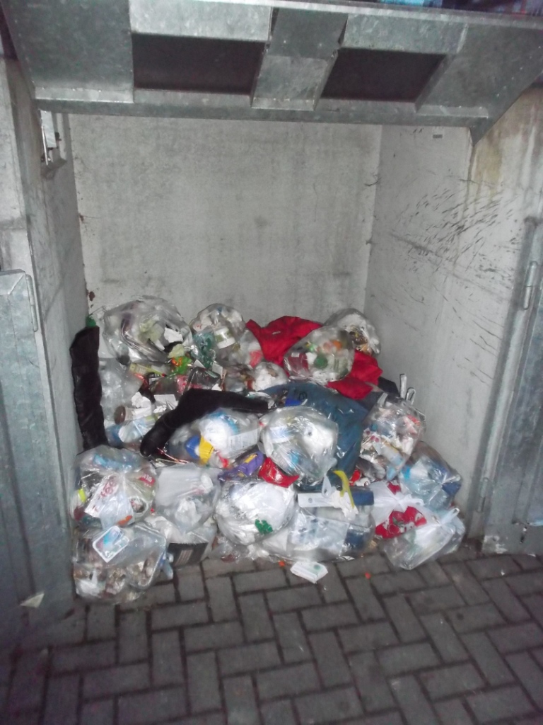 warum auch immer, aber hier wurden bei vollem Wohnbetrieb die Müllcontainer abgezogen. Diese Anblicke boten sich daher an einem der vergangenen Abende: