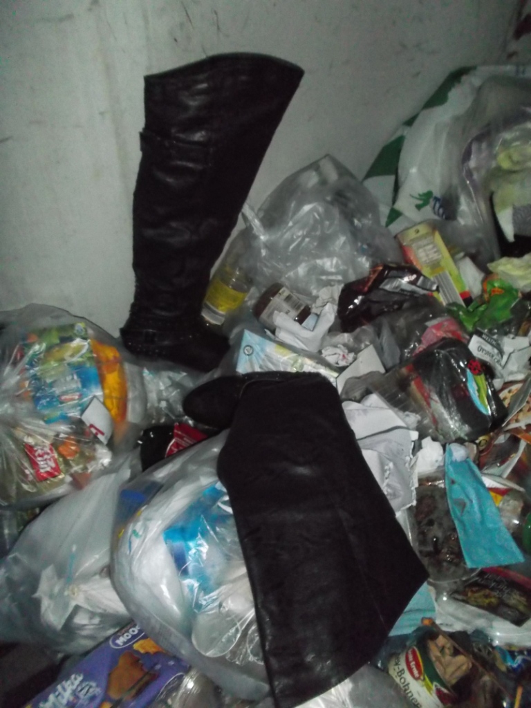 ) doch Laura tatsächlich ein Paar Stiefel in einem Restmüllcontainer entdeckt und die haben ihr sofort gefallen. Während sie ihren Termin wahrnahm, habe ich die Stiefel schnell fotografiert und ihr mitgebracht. Laura hat sich sehr gefreut, Jessica dafür so gar nicht, als sie erfuhr, woher die Stiefel stammen. Als ob sie das selbst je wirklich interessiert hat, wenn sie welche für sich abgreifen konnte / kann.