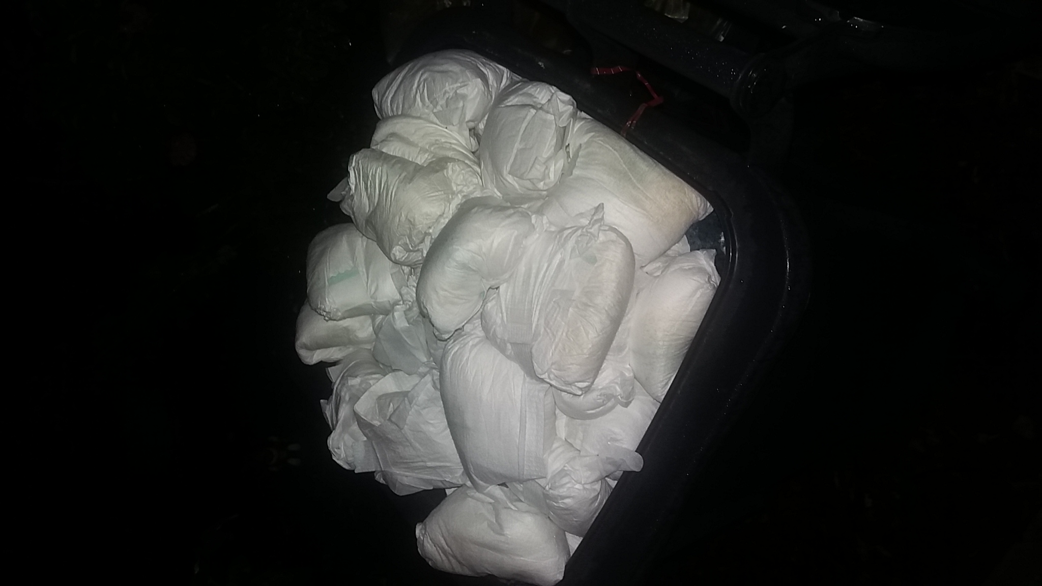 Die von meiner Nichte habe ich nicht mehr. Dafür war ich heute Nacht mal ein bisschen Unterwegs. Da Dienstags bei uns Restmülltonne dran ist bin ich mal leise am Kindergarten vorbeigegangen. Und sehe da ein ganz schön voller Sack mit Pampis