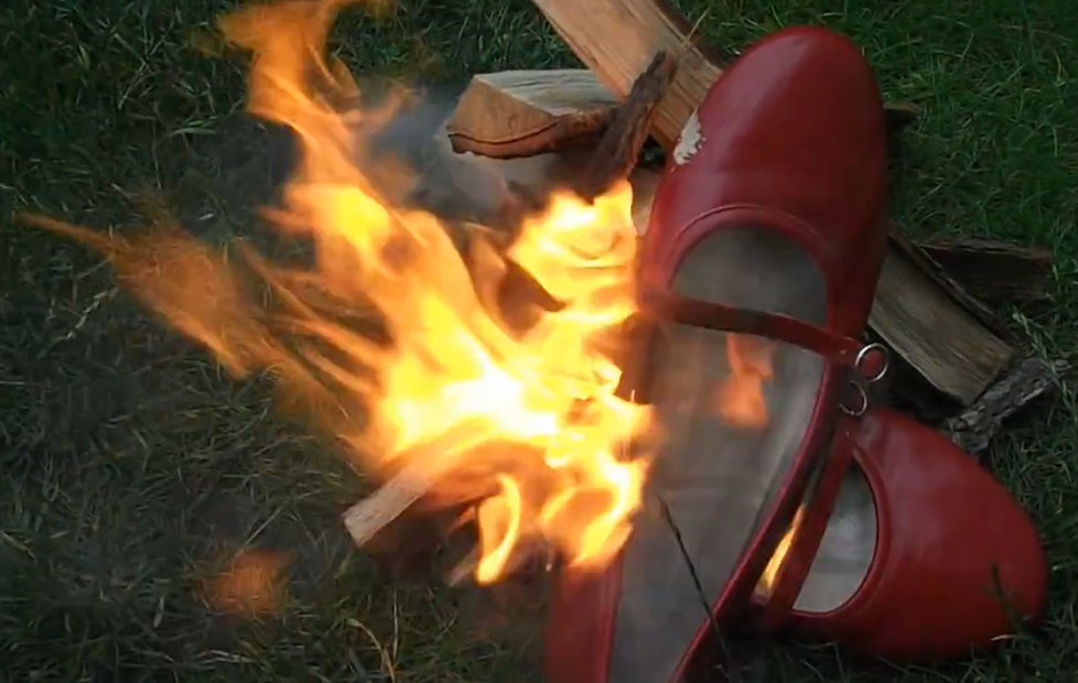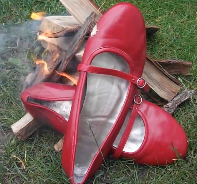 Denk doch mal an die Videos vom Burn2shoes, wo die braunen Lederballerinas im Feuer schlagartig zusammenklappen, wie eine Mausefalle ...