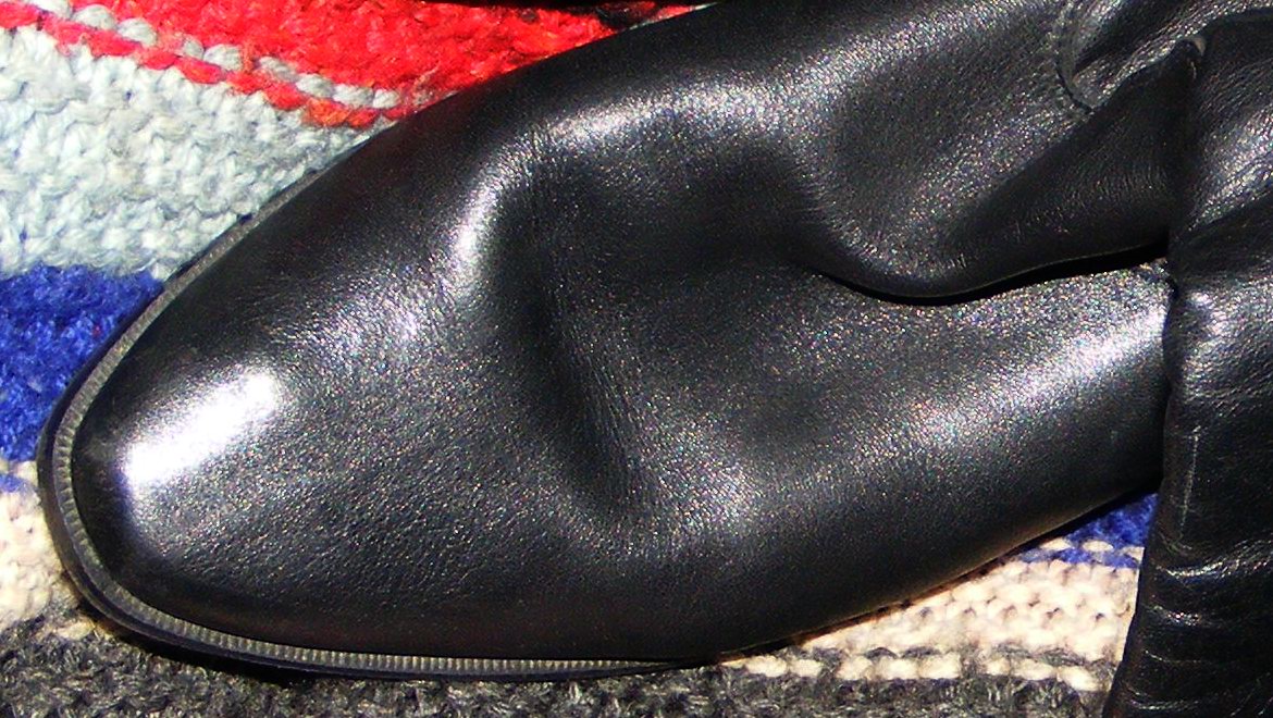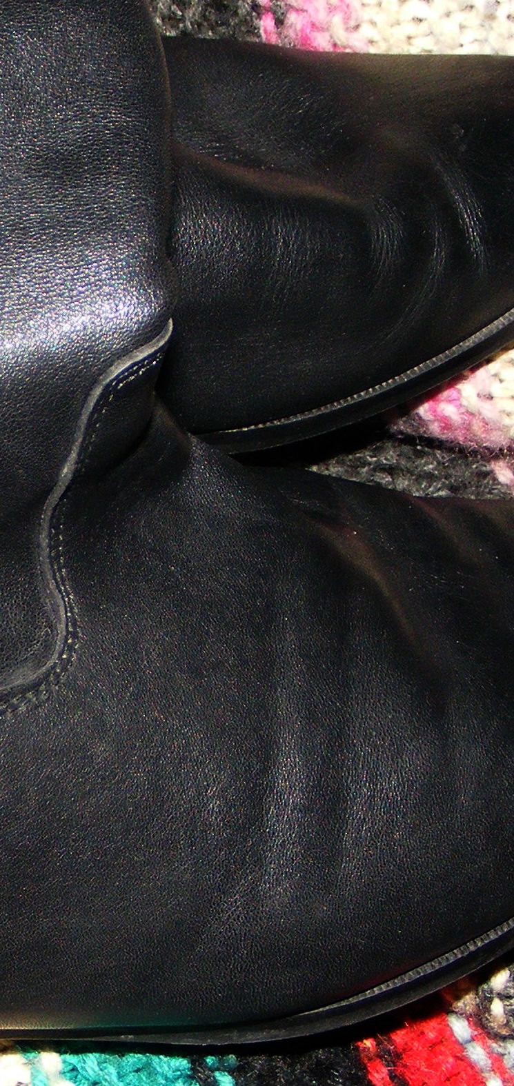 Nun weiß ich ja nicht, was die Vorbesitzerin schon Alles damit angestellt hatte. Es deutet aber Alles darauf hin, daß auch sie die Stiefel nur als Haus- oder Büroschuhe getragen hat, weil keinerlei Beschädigungen der "Straße" oder Autofahren an den Sohlen und Absätzen zu erkennen sind, obwohl das Leder auf ein bereits langjähriges Tragen schließen läßt.