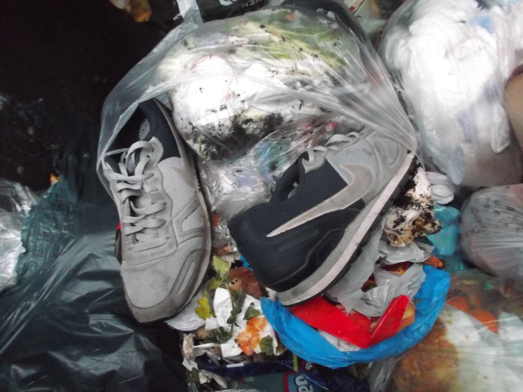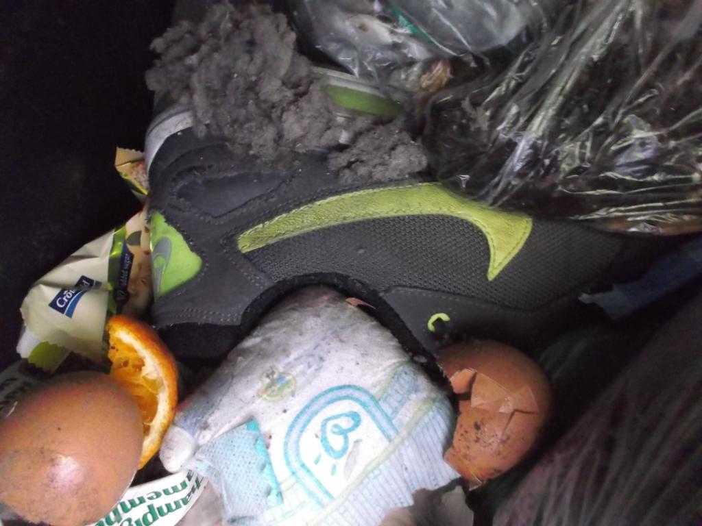 in aller Regel findet man geile Abfälle in Restmüllcontainern von Wohnanlagen als "anonyme" Abfälle, aber ab und an kann man leicht herausfinden, von wem die Abfälle stammen. So war es hier an einem recht kalten Tag und nur ein Küchenmüllbeutel mit Sneaks und ein Karton waren noch etwas warm von der Wohnung, welche sie gerade für immer verlassen mussten.