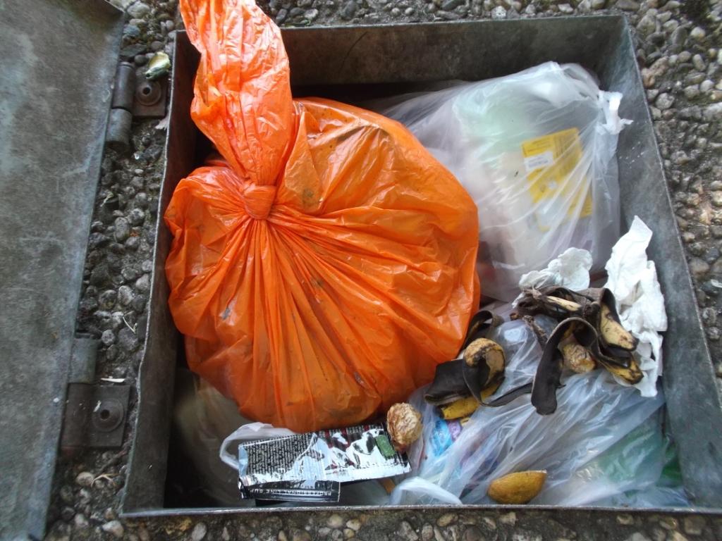 Auch eine schöne Kombination, der Altkleidersack und der Müllsack: Während der Inhalt des einen verwertet wird, gibt’s für den anderen nur den Weg ins Feuer. Als passionierter Sammler weiss ich natürlich, dass sich die Mädels oft schämen, ihre verwaschenen und löcherigen Höschen und die ausgeleierten Bh’s in den Altkleidersack zu geben und darum werden diese Dinge in den Abfallsack gestopft, damit niemand mehr sie zu Gesicht bekommen wird.