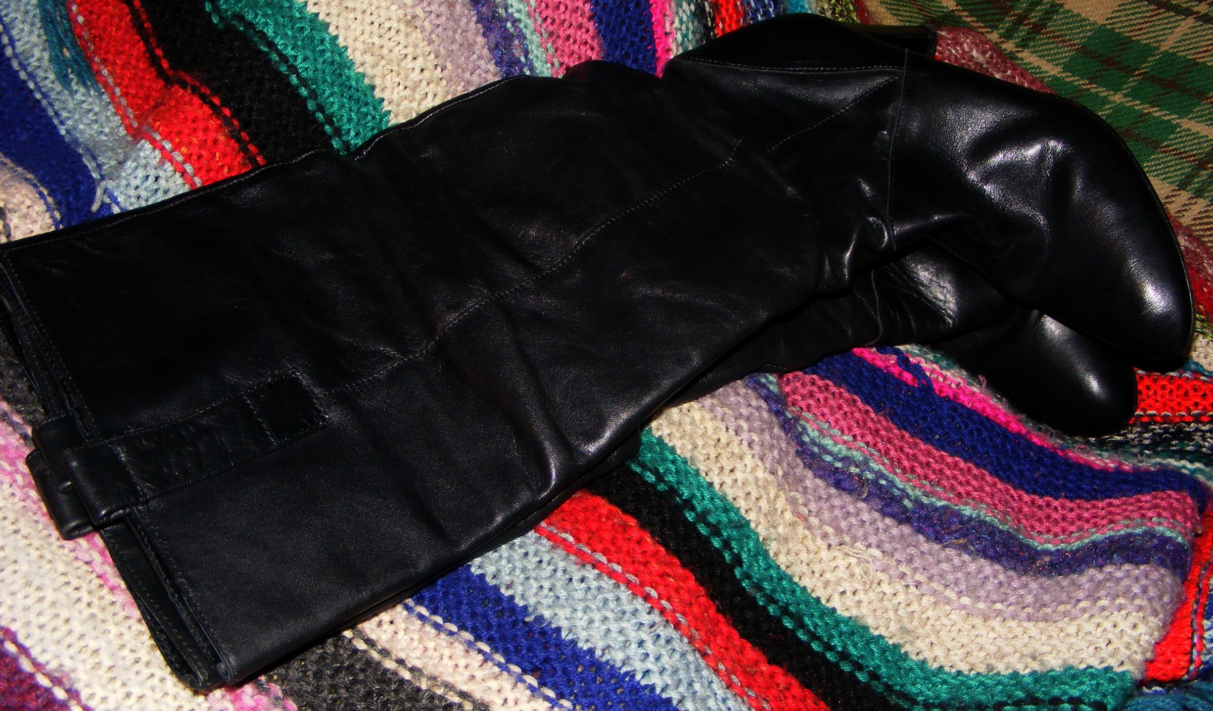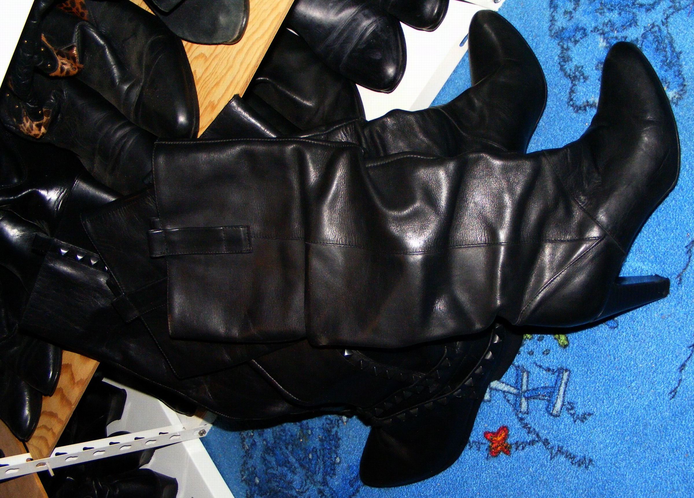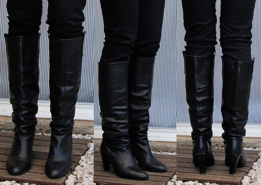 "Scheißdinger" bezog sich auf den Zustand, total vermüllt und das bis in die auf 65 cm gerafft abgenähten Schäfte. Die haben Innenfutter aus schwarzem hauchfeinem Echtleder, war fast genauso verstaubt. Ich sah schrecklich aus, völlig mit Schuhkreme verschmiert, bis an die Schultern ...