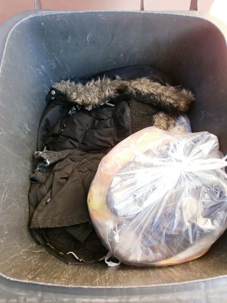 morgen früh ist Müllabfuhr und seit Samstagabend liegt schon wieder weitere Müllbeutel in unserer Tonne. Darunter auch die Sneakers von Lenas Sohn. Martinas Jeans, die "ordentlichen" Stiefel von ihrer Freundin und Tamaras Jacke sind schon ziemlich tief in den Dreck gesackt: