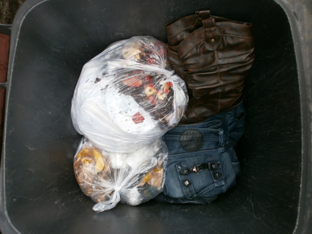Beinahe schon unnatürliche Bilder, aber authentisch. Auch so können ausrangierte Stiefel und Jeans im Müll "landen". Wie macht ihr das denn