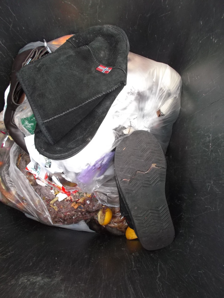 Ich schau halt öfters mal in die Altschuhcontainer bei uns rein, da finde ich auf jeden Fall Schuhe