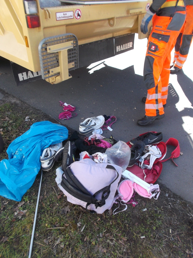 Ich stelle mir gerade vor, wie die letzten Stunden, vom Zimmer der Tochter, das hineinstopfen des Mülls, dann das rausstellen in den Müllhaufen und die Abholung abgelaufen sind. Kopfkino pur! Vielleicht hat die Tochter auch einen neuen bekommen und den alten ganz bewusst zum Müll gestellt?