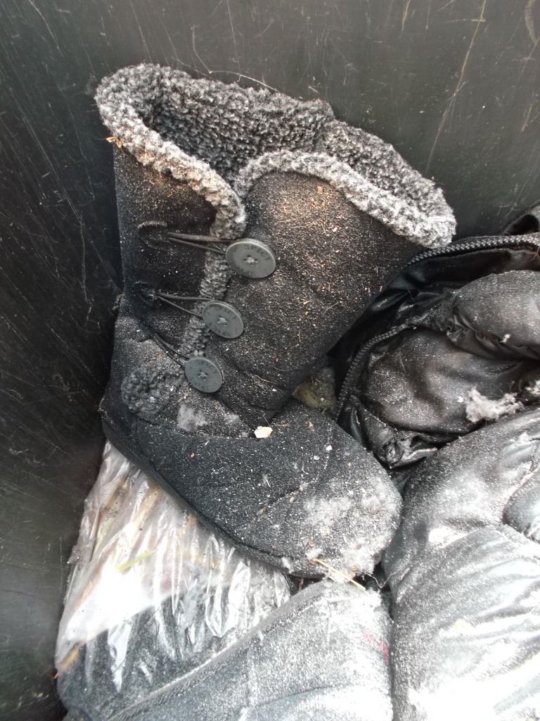 - Seit gut fünf Wochen lagen Lauras Boxerstiefelchen nun im Küchenmüll!